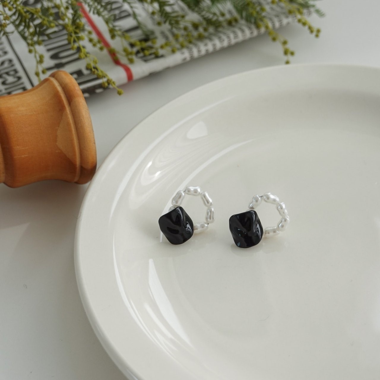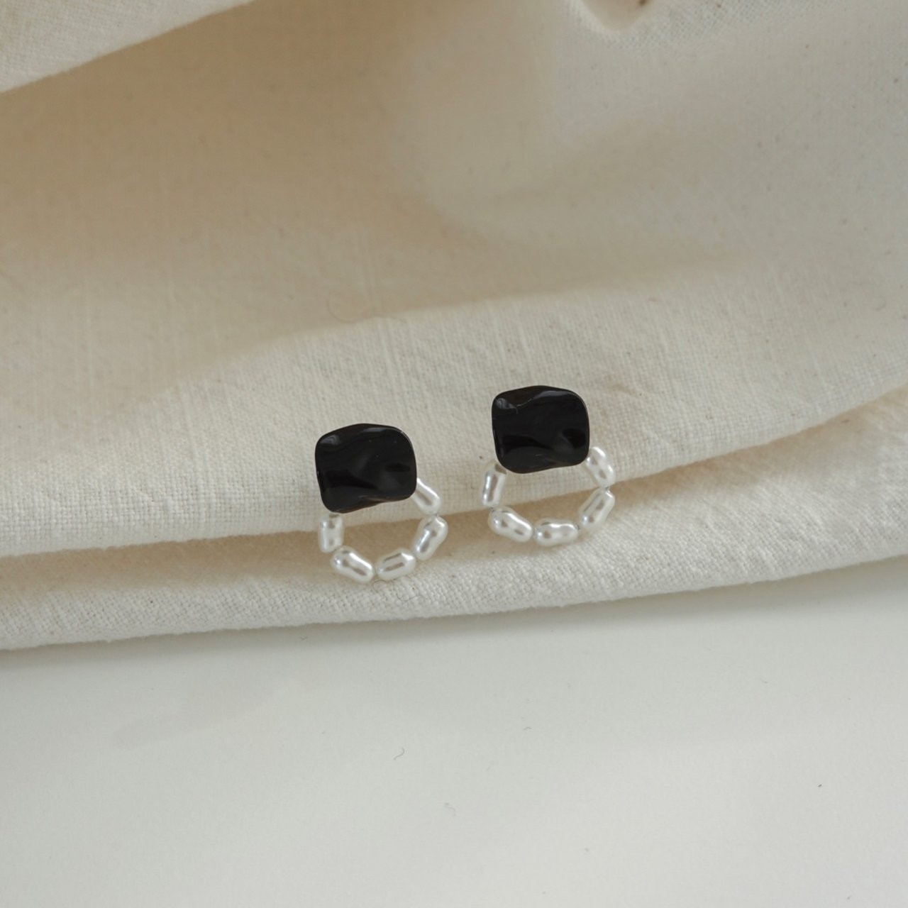 品名:E3024 진주 귀걸이 (티탄침) ◎※☞颜色:블랙 ◎※☞尺寸:FREE ◎※☞材质:镀金 0% 翻译