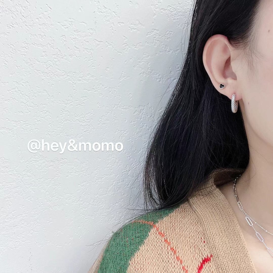 图款 ⚪925银 重工小香菱格纹猪鼻扣耳圈 17000