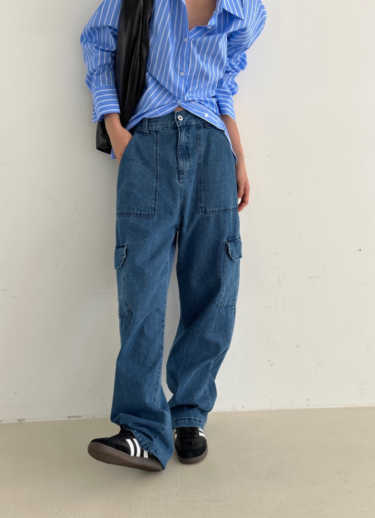 品名:카퍼 데님 카고 퍼티그 PT ◎※☞颜色:청 ◎※☞尺寸:FREE ◎※☞材质:纯棉 100% 翻译