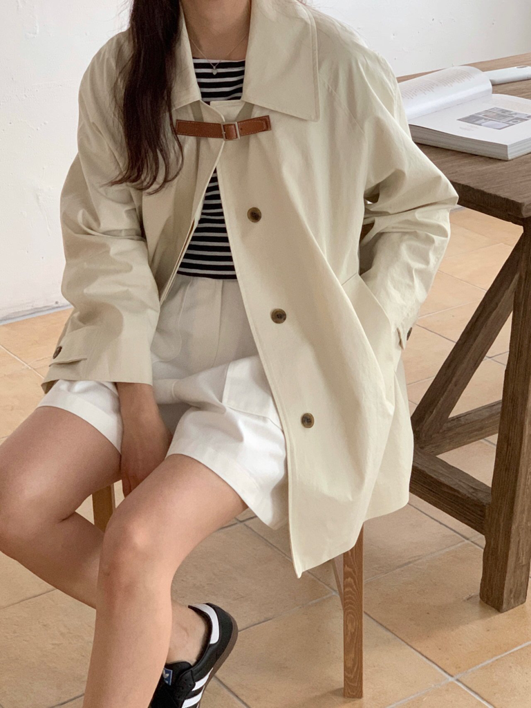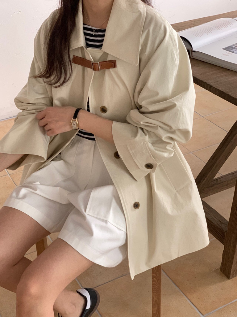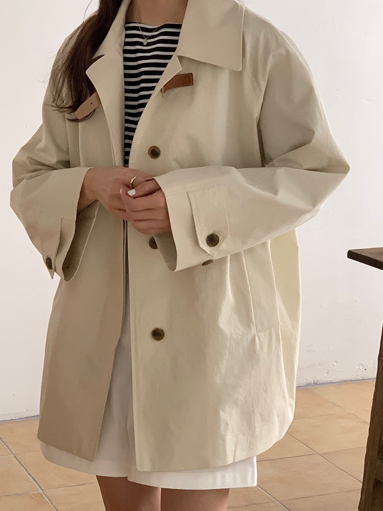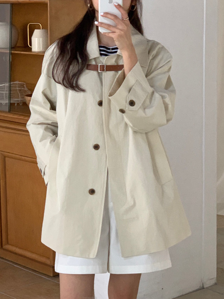 品名:비죠트렌치 ◎※☞颜色:네이비, 크림 ◎※☞尺寸:FREE ◎※☞材质:纯棉 100% 翻译