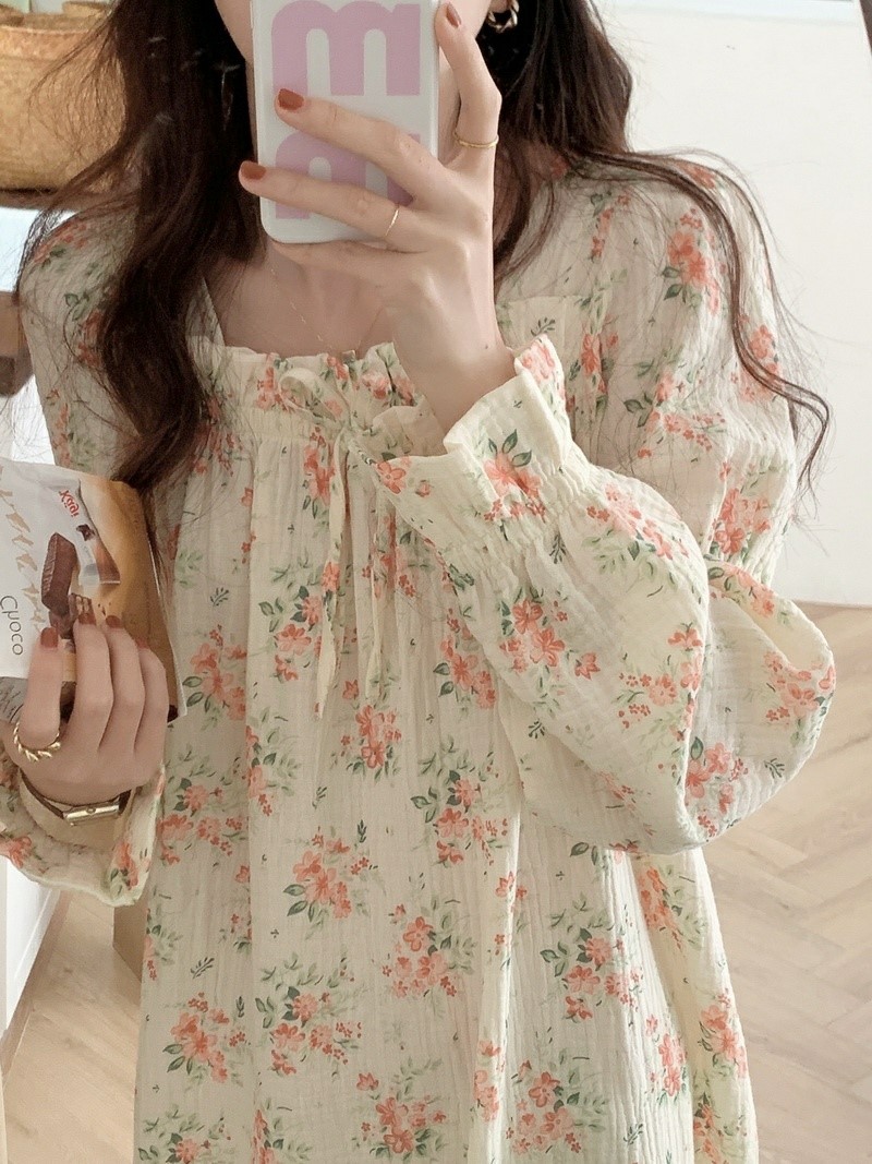 品名:빛나잠옷원피스(파자마 홈웨어) ◎※☞颜色:아이보리 ◎※☞尺寸:FREE ◎※☞材质:纯棉 100% 翻译