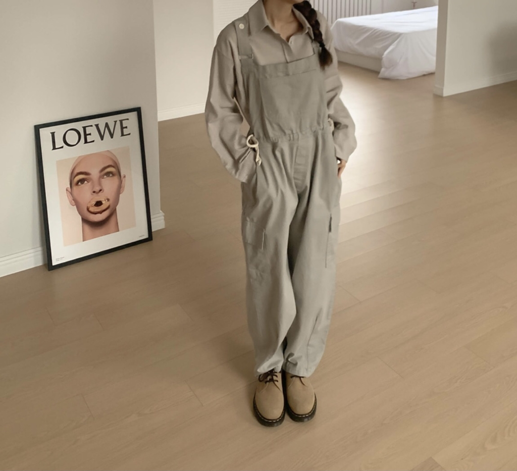品名:샌드 멜빵 오버롤 PT ◎※☞颜色:그레이, 네이비, 아이보리 ◎※☞尺寸:FREE ◎※☞材质:纯棉 100% 翻译