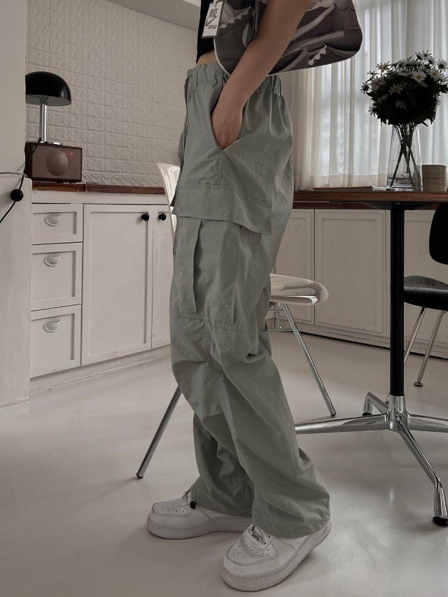 品名:나일론 와이드 카고 팬츠 ◎※☞颜色:검정, 그레이, 연카키, 크림 ◎※☞尺寸:L, M ◎※☞材质:尼龙 100% 翻译