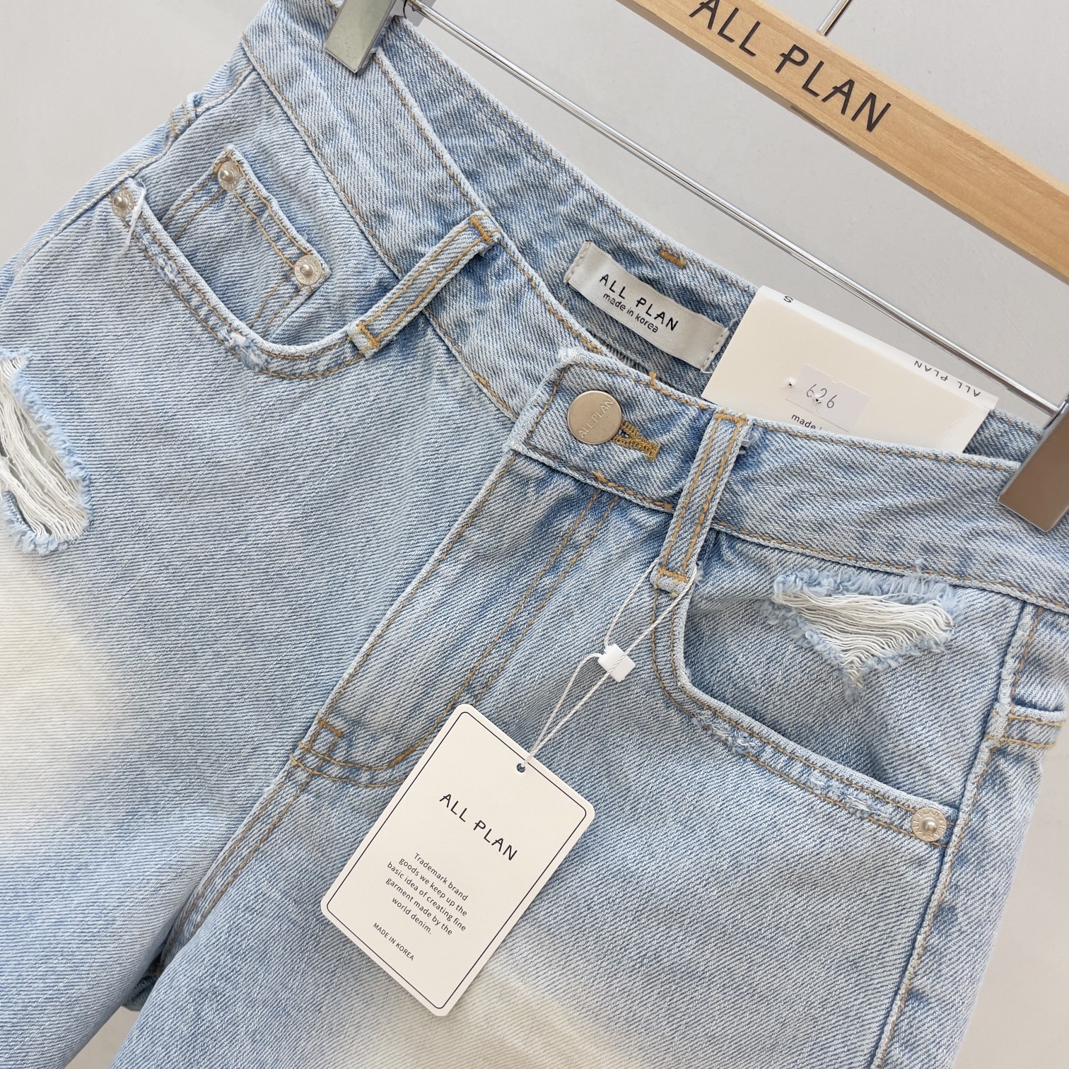 品名:626 ◎※☞颜色:연청 ◎※☞尺寸:L, M, S ◎※☞材质:纯棉 100% ◎※☞注意事项:只能干洗,只能手洗,不能手洗,机洗,不能使用漂白剂,不能烘干,不能熨烫,不能曲折 翻译