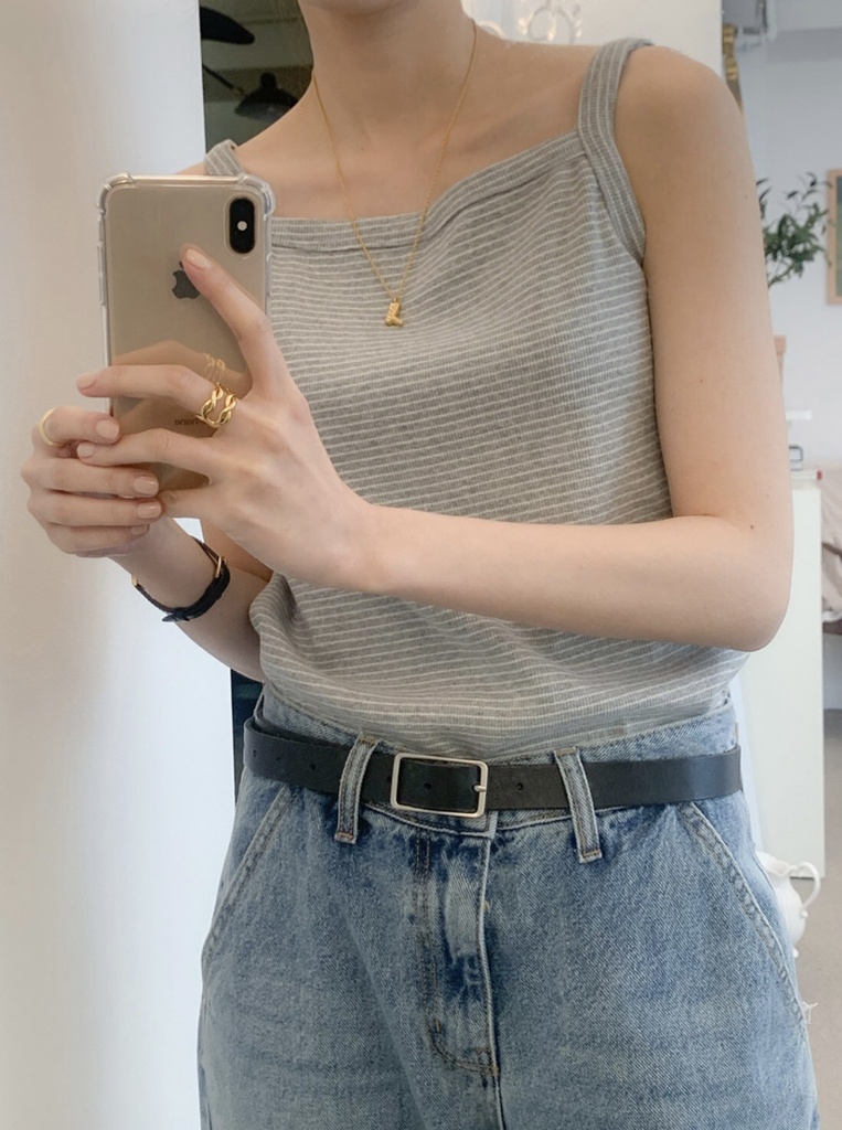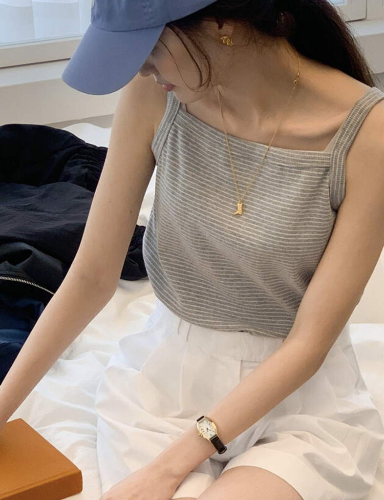 品名:보트넥 단가라 나시 ◎※☞颜色:그레이, 네이비, 핑크 ◎※☞尺寸:FREE ◎※☞材质:纯棉 100% 翻译