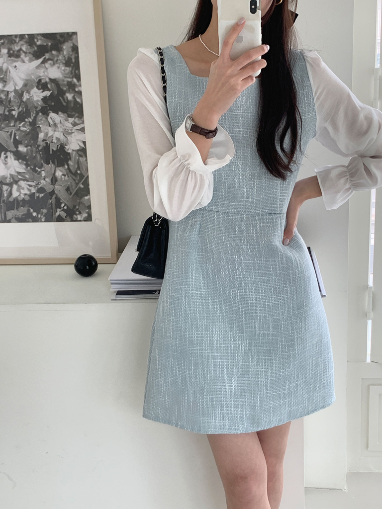 品名:샤본 트위드 원피스 ◎※☞颜色:블랙, 소라 ◎※☞尺寸:FREE ◎※☞材质:聚酯 100% ◎※☞注意事项:只能干洗,只能手洗,不能手洗,机洗,不能使用漂白剂,不能烘干,不能熨烫,不能曲折 翻译