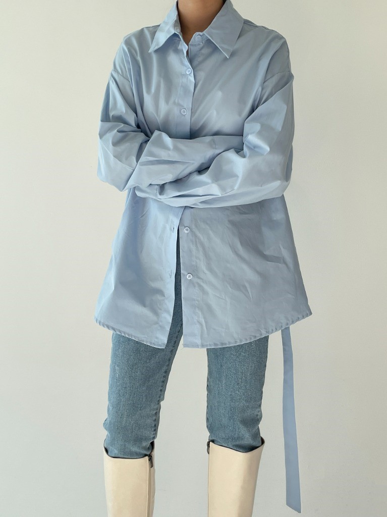 品名:벨트와이드셔츠 ◎※☞颜色:검정, 베이지, 소라, 아이 ◎※☞尺寸:FREE ◎※☞材质:면 100% 翻译