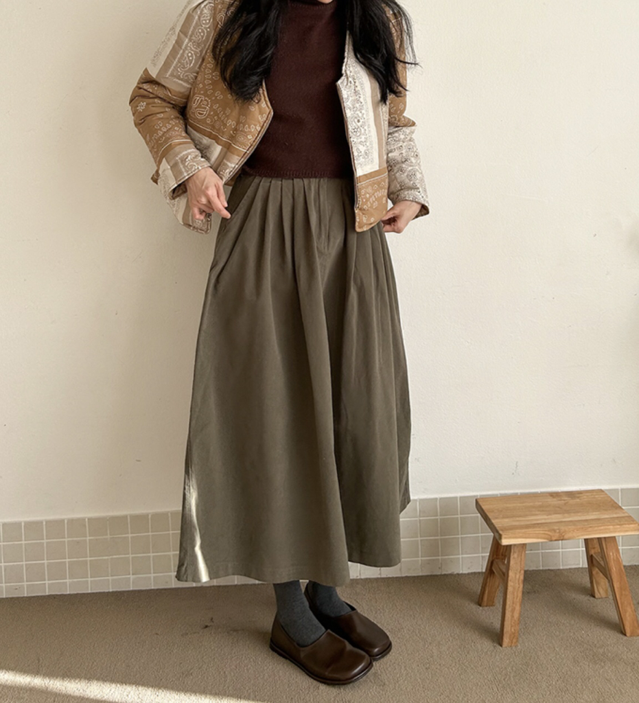 品名:피노 핀턱 주름 SK ◎※☞颜色:블랙, 아이보리, 카키 ◎※☞尺寸:FREE ◎※☞材质:纯棉 100% 翻译