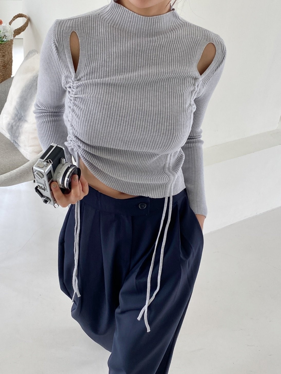 品名:디프니니트 스트링 트임 골지 신상 반목 ◎※☞颜色:그레이, 블랙, 아이보리 ◎※☞尺寸:FREE ◎※☞材质:腈纶 100% 翻译