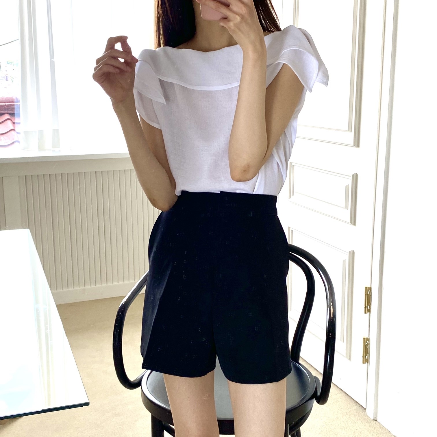 品名:이나BL(신상,프릴,보트넥,오프숄더) ◎※☞颜色:노랑, 블랙, 소라, 아이보리 ◎※☞尺寸:FREE ◎※☞材质:聚酯 60%,人造纤维 40% 翻译