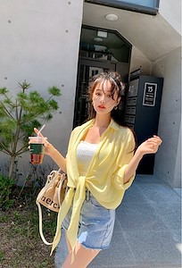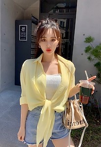 百搭清爽亚麻打结防晒空调衫