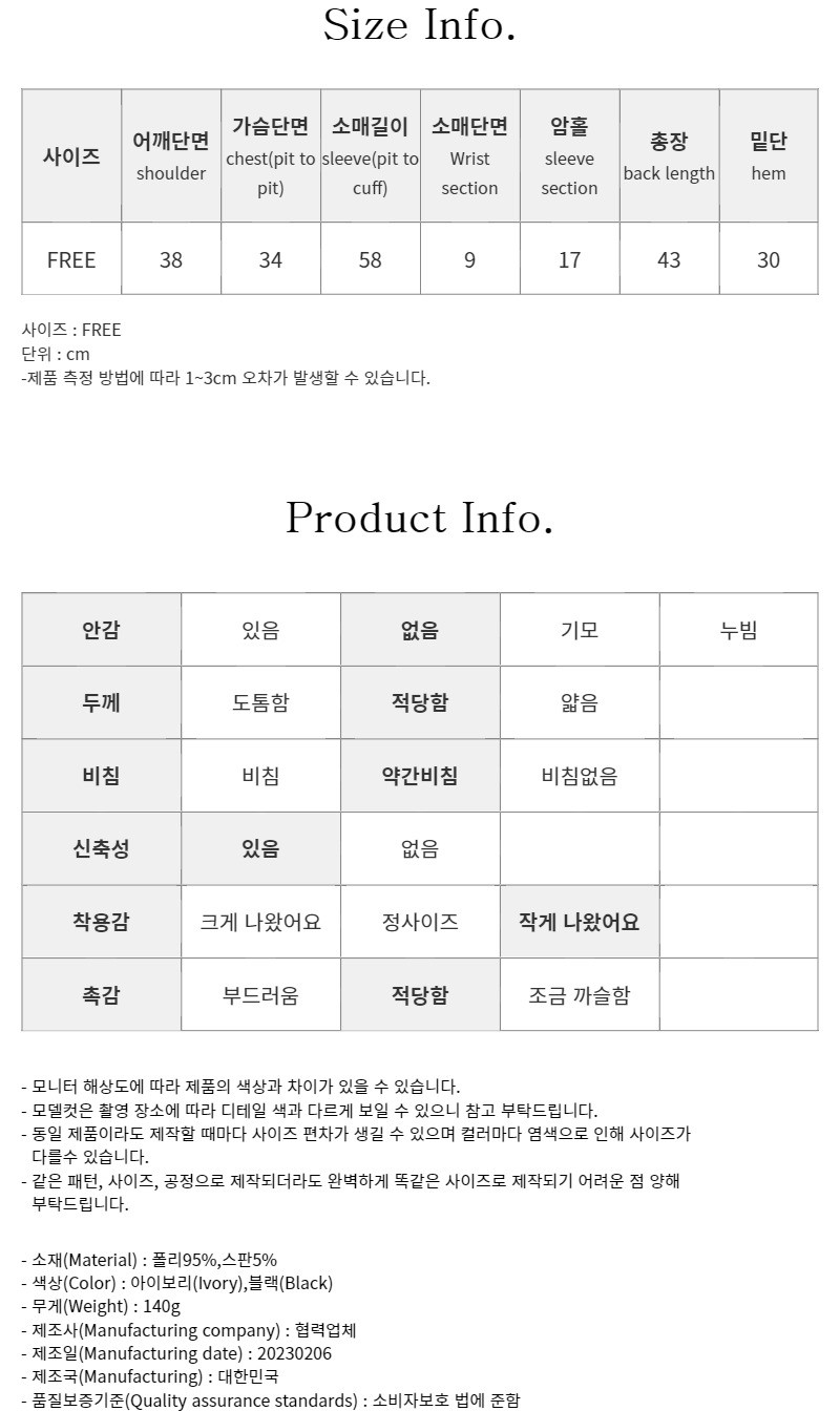 品名:언발크롭 ◎※☞颜色:블랙, 아이보리 ◎※☞尺寸:FREE ◎※☞材质:스판 5%,聚酯 95% ◎※☞注意事项:只能干洗,只能手洗,不能手洗,机洗,不能使用漂白剂,不能烘干,不能熨烫,不能曲折 翻译