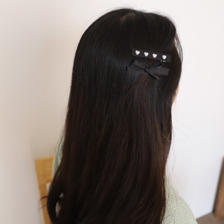 品名:H3039 하트 리본 헤어핀 세트 ◎※☞颜色:블랙 ◎※☞尺寸:F ◎※☞材质:스틸 0% 翻译