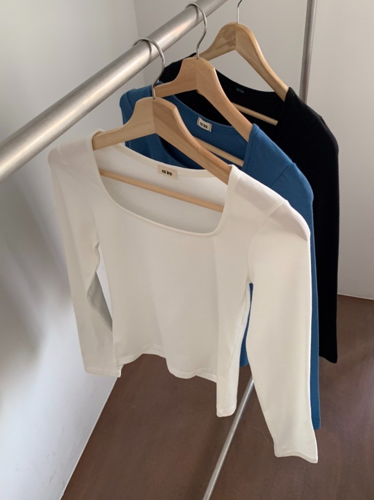 品名:뮤트 스퀘어t ◎※☞颜色:블랙, 블루, 아이보리 ◎※☞尺寸:FREE ◎※☞材质:纯棉 55%,모달 40%,스판 5% 翻译