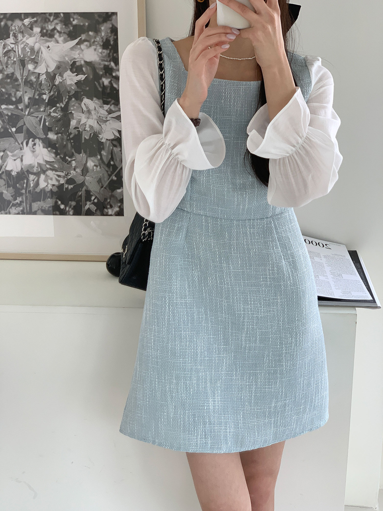 品名:샤본 트위드 원피스 ◎※☞颜色:블랙, 소라 ◎※☞尺寸:FREE ◎※☞材质:聚酯 100% ◎※☞注意事项:只能干洗,只能手洗,不能手洗,机洗,不能使用漂白剂,不能烘干,不能熨烫,不能曲折 翻译