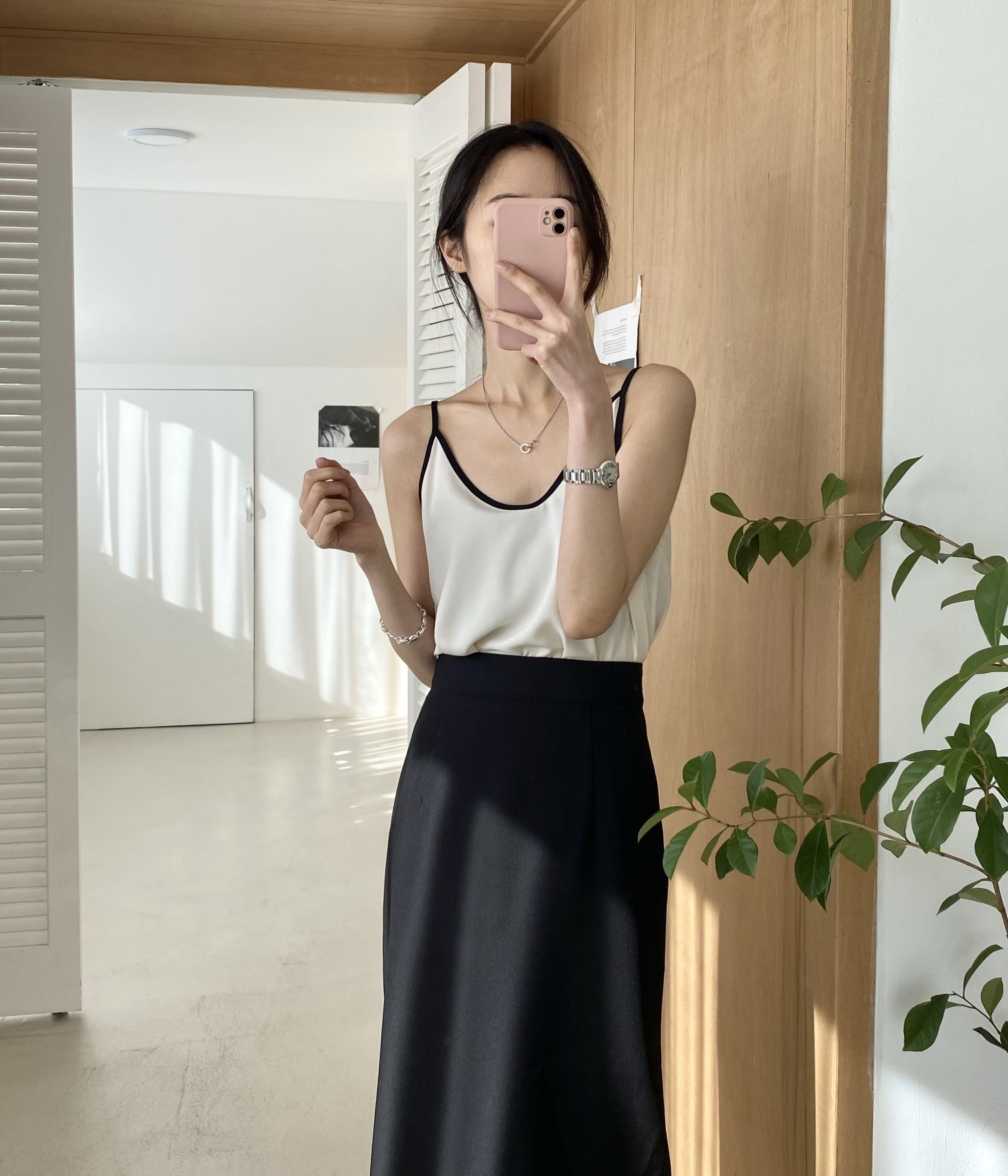 品名:메리나시(신상,나시,블라우스,배색) ◎※☞颜色:베이지, 블랙, 아이보리 ◎※☞尺寸:FREE ◎※☞材质:聚酯 100% 翻译