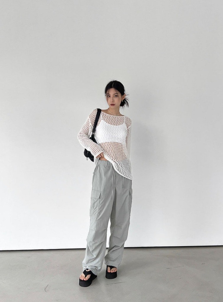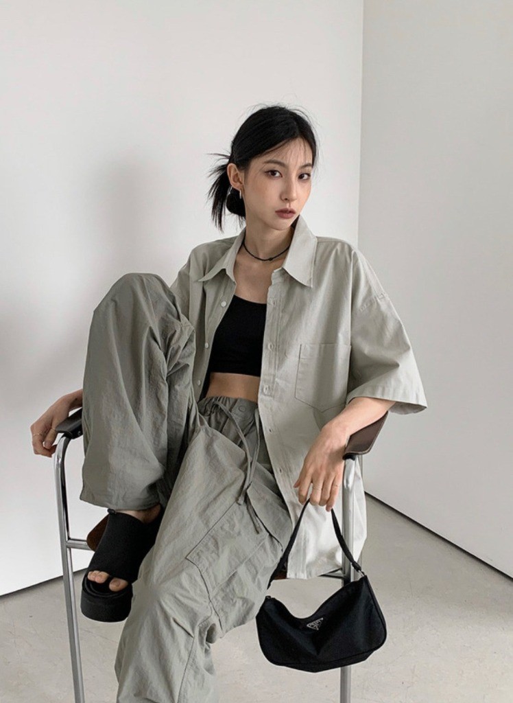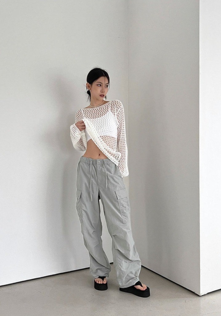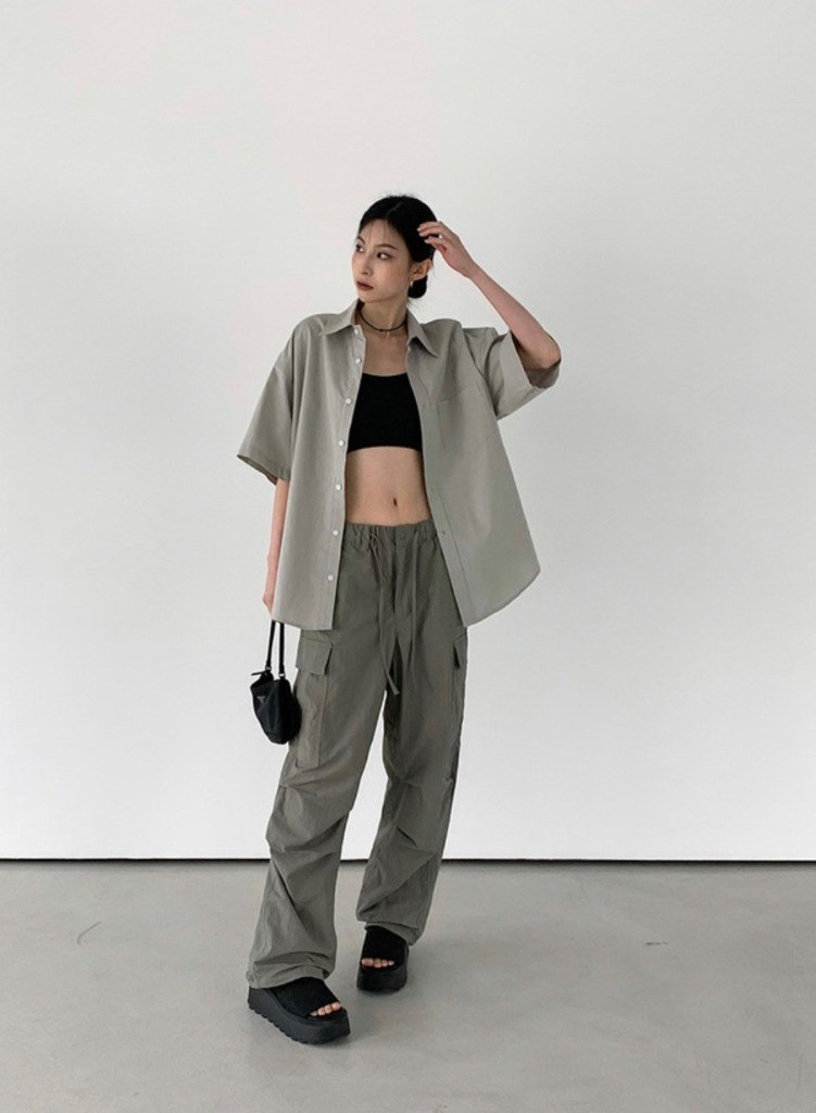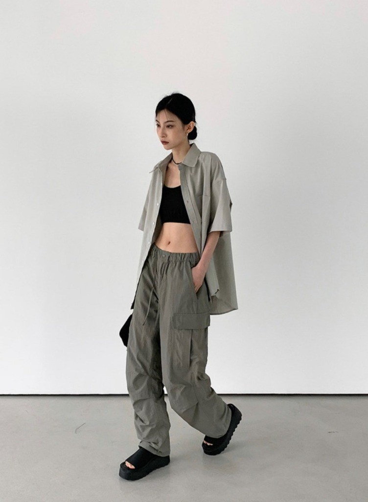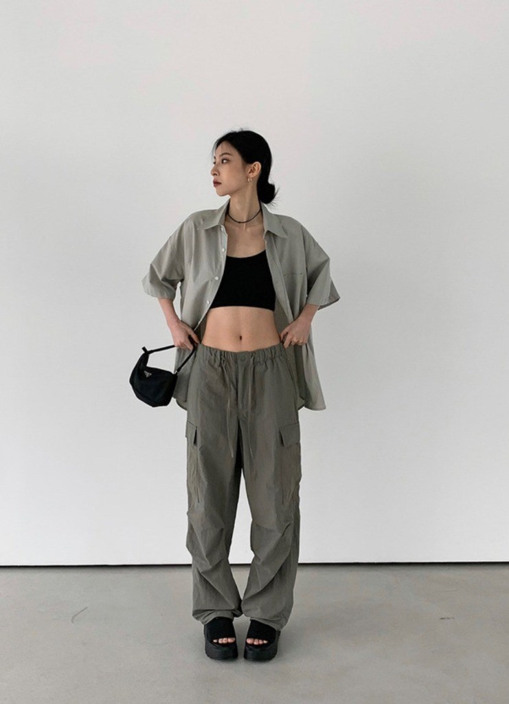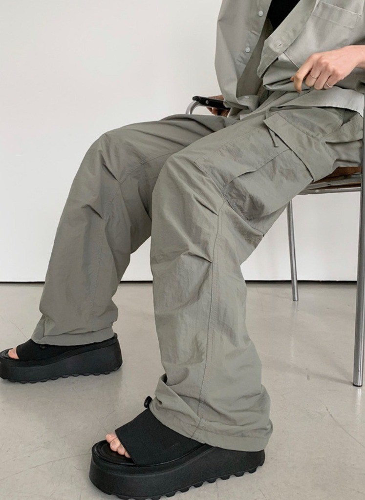 品名:나일론 와이드 카고 팬츠 ◎※☞颜色:검정, 그레이, 연카키, 크림 ◎※☞尺寸:L, M ◎※☞材质:尼龙 100% 翻译