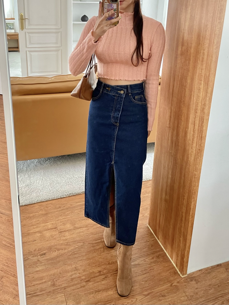 品名:346 롱스커트 청치마 ◎※☞颜色:진청 ◎※☞尺寸:L, M, S ◎※☞材质:纯棉 100% 翻译
