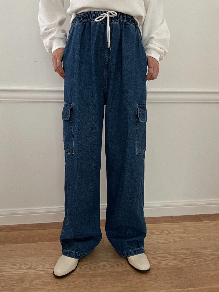 品名:밴딩카고데님팬츠 ◎※☞颜色:진청, 흑청 ◎※☞尺寸:FREE ◎※☞材质:纯棉 100% 翻译