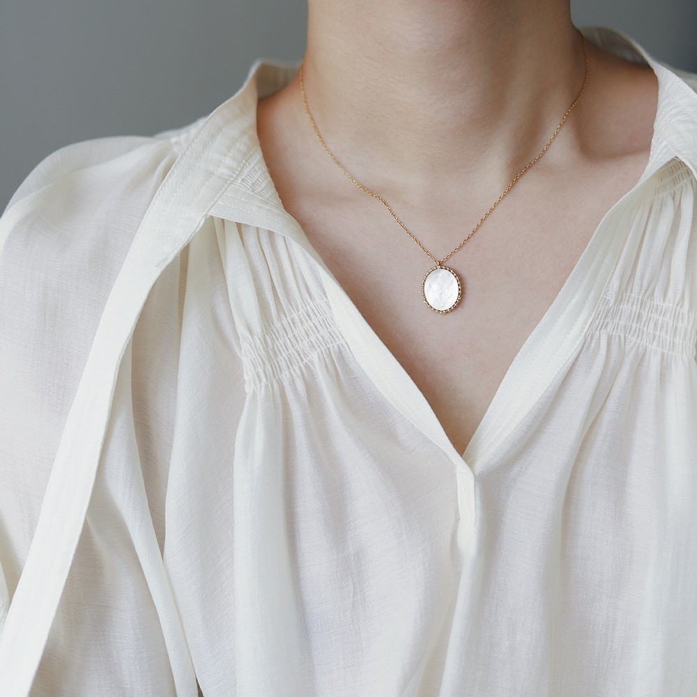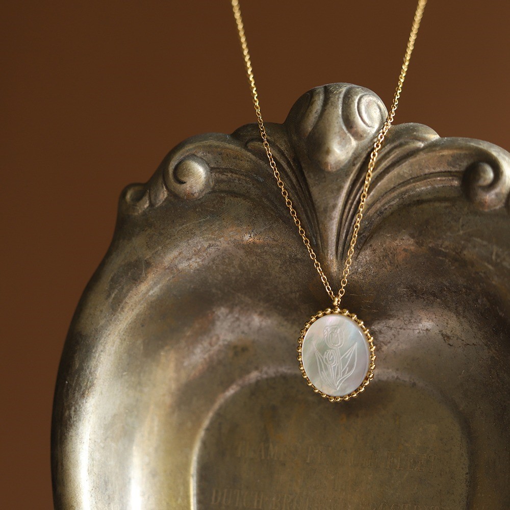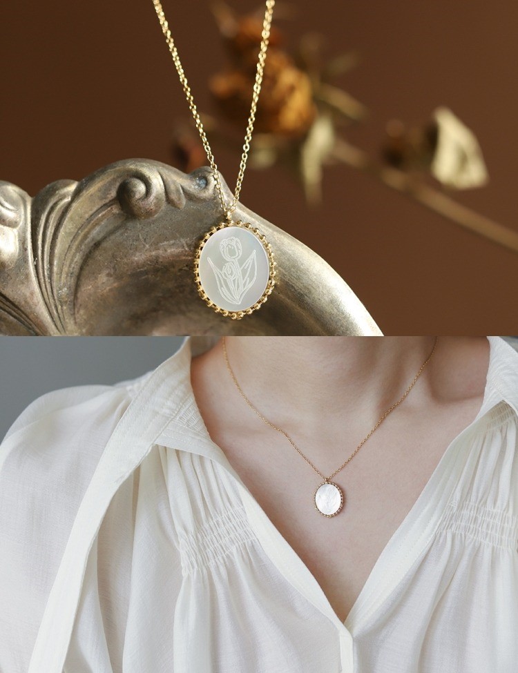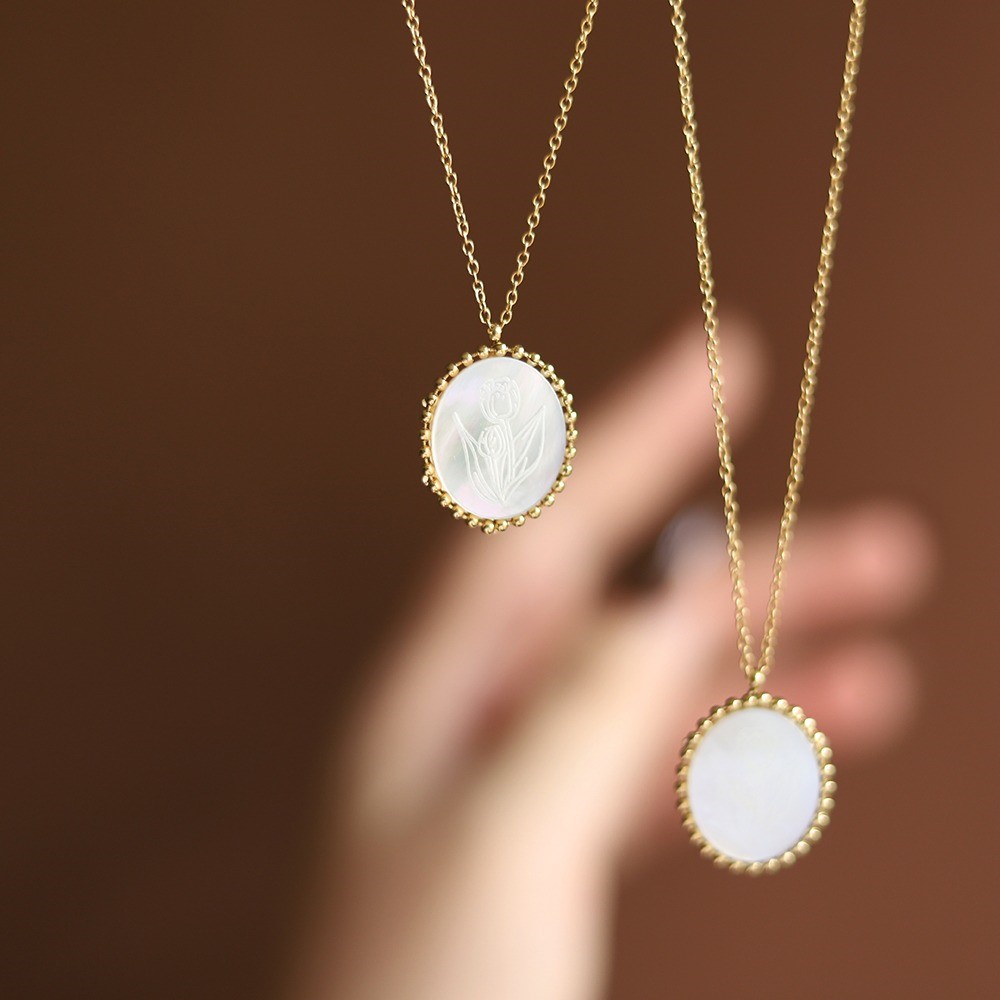 品名:TN222 티타늄자개튤립목걸이 ◎※☞颜色:골드 ◎※☞尺寸:46+6CM ◎※☞材质:钢 100%,钛 100% 翻译