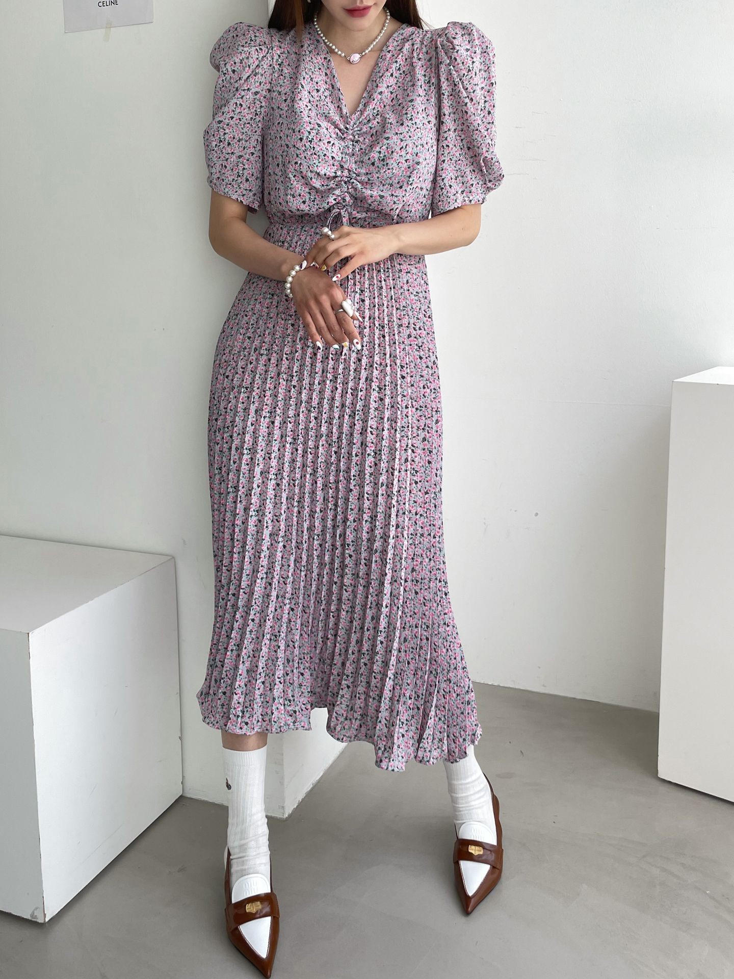 品名:sale23#) 잔꽃 주름OPS ◎※☞颜色:핑크 ◎※☞尺寸:FREE ◎※☞材质:聚酯 100% ◎※☞注意事项:只能干洗,只能手洗,不能手洗,机洗,不能使用漂白剂,不能烘干,不能熨烫,不能曲折 翻译