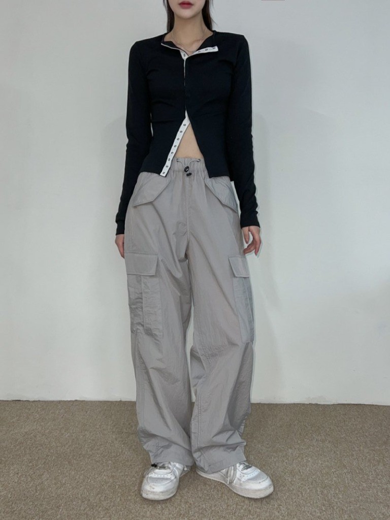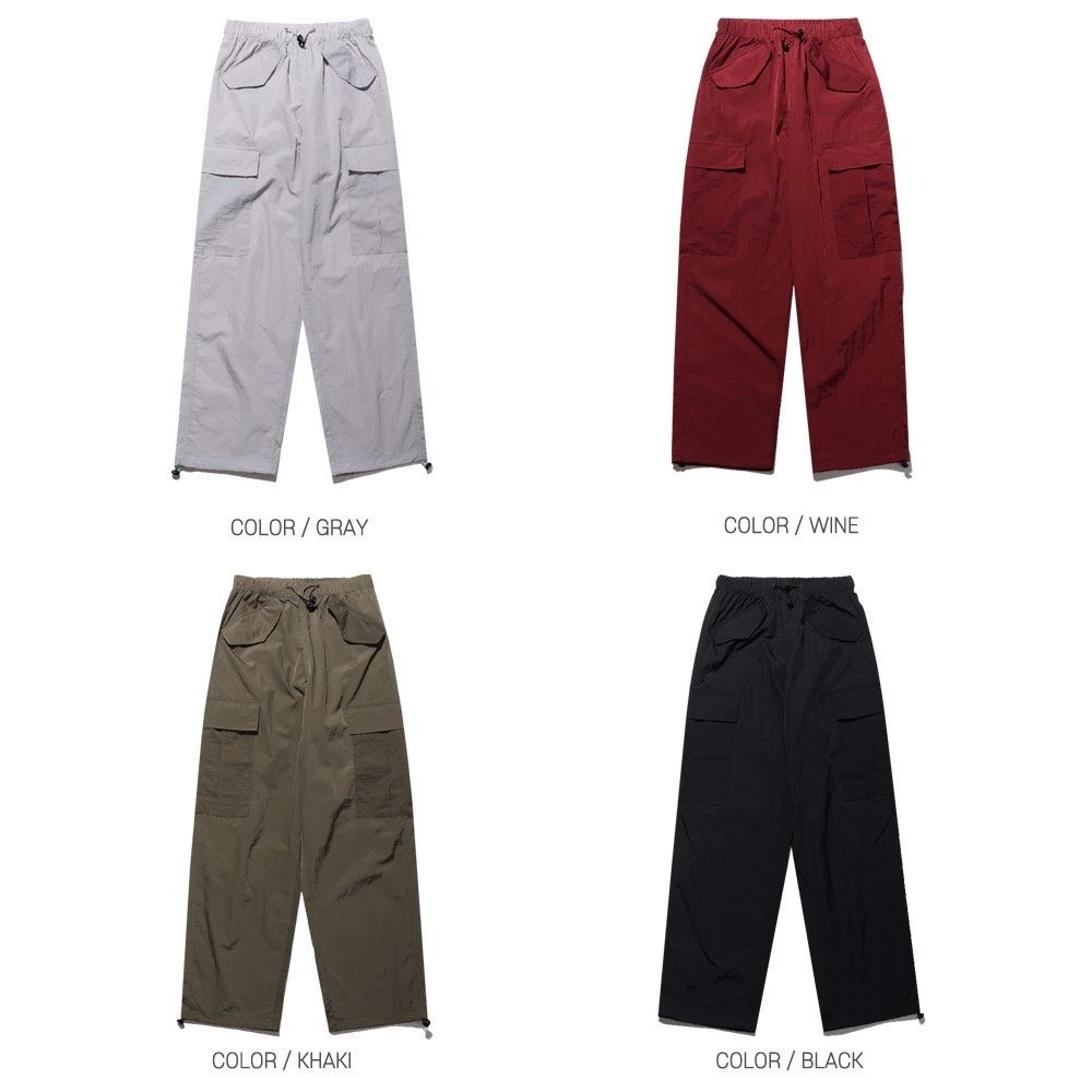 品名:러스 후다 와이드 카고 팬츠 ◎※☞颜色:검정, 그레이, 버건디, 카키 ◎※☞尺寸:L, M ◎※☞材质:尼龙 100% 翻译
