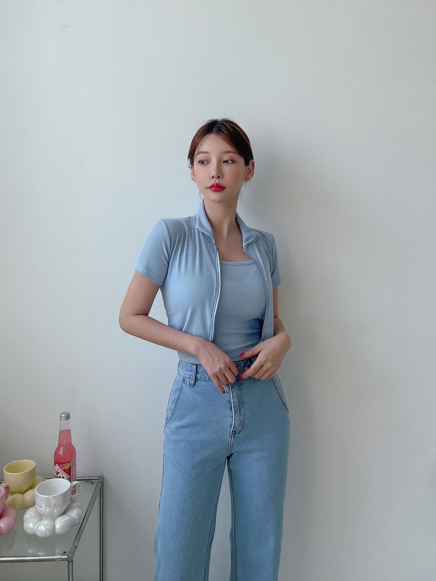 品名:투웨이 나시 집업 세트 ◎※☞颜色:그레이, 블랙, 소라, 화이트 ◎※☞尺寸:FREE ◎※☞材质:弹力 5%,聚酯 95% 翻译