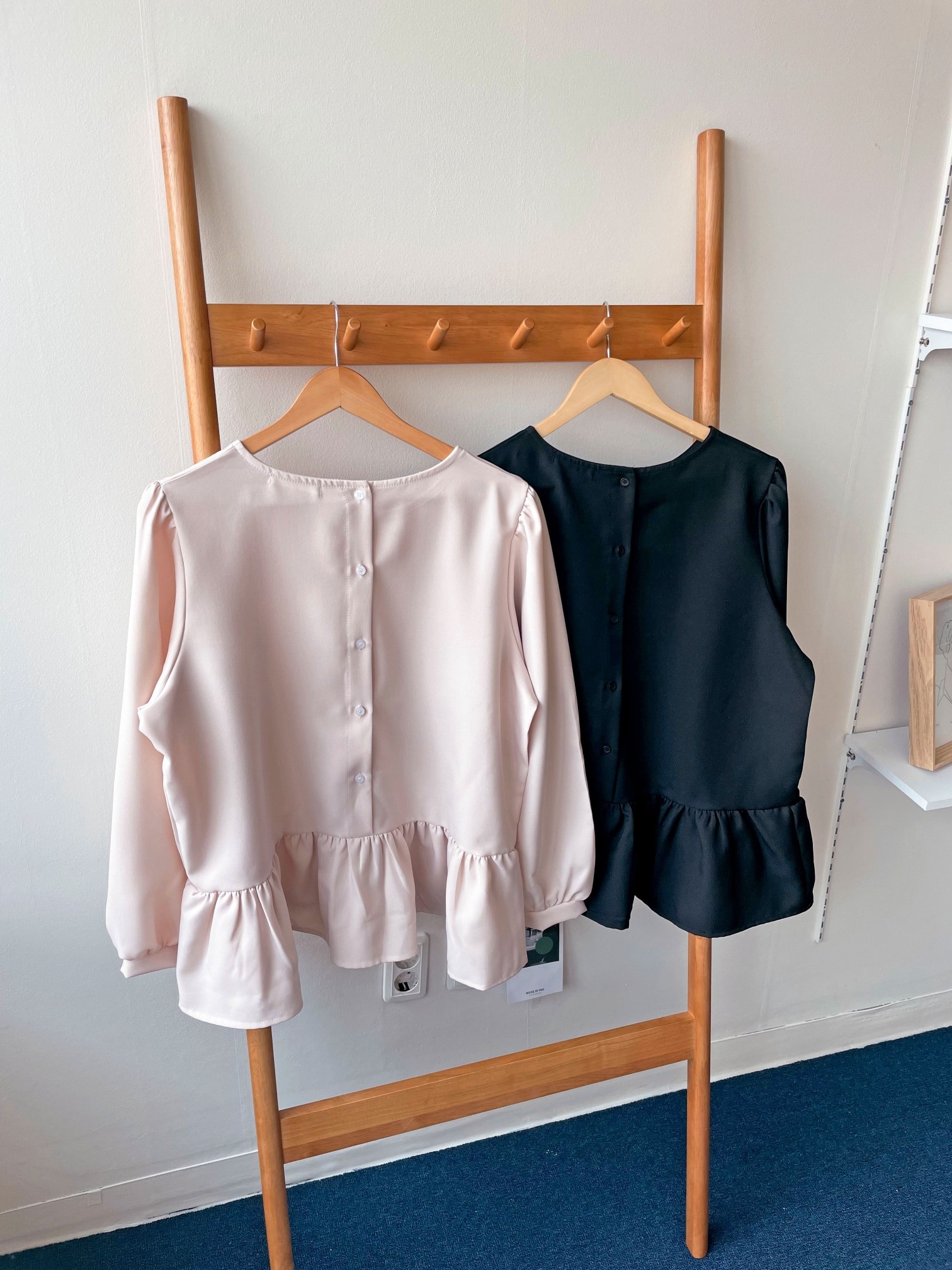 品名:纯色简约甜美木耳边宽松衬衫上衣 ◎※☞颜色:블랙, 연베이지 ◎※☞尺寸:FREE ◎※☞材质:聚酯 100% ◎※☞注意事项:只能干洗,只能手洗,不能手洗,机洗,不能使用漂白剂,不能烘干,不能熨烫,不能曲折 翻译