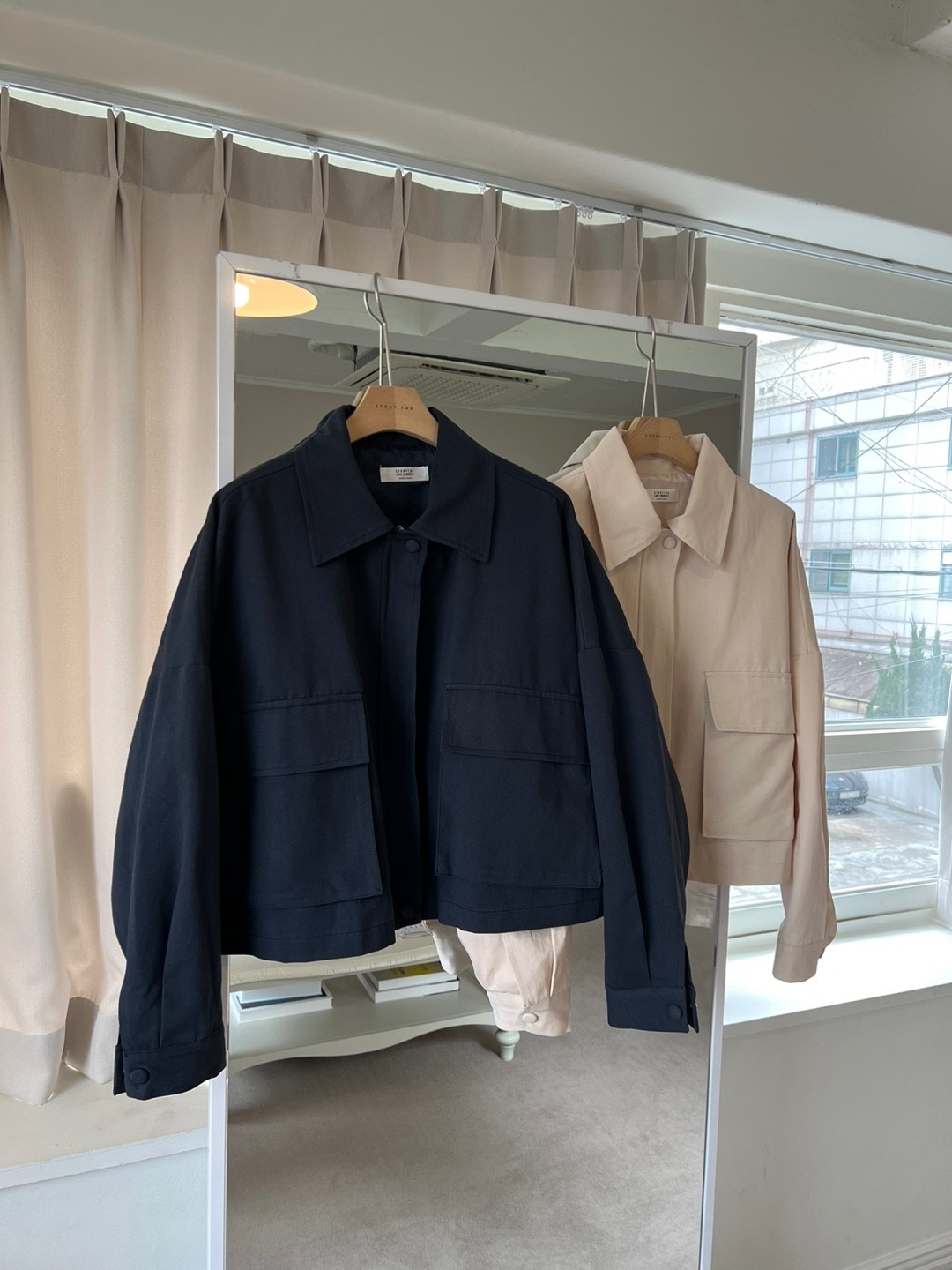 品名:크런키자켓 ◎※☞颜色:네이비, 베이지 ◎※☞尺寸:FREE ◎※☞材质:纯棉 100% 翻译