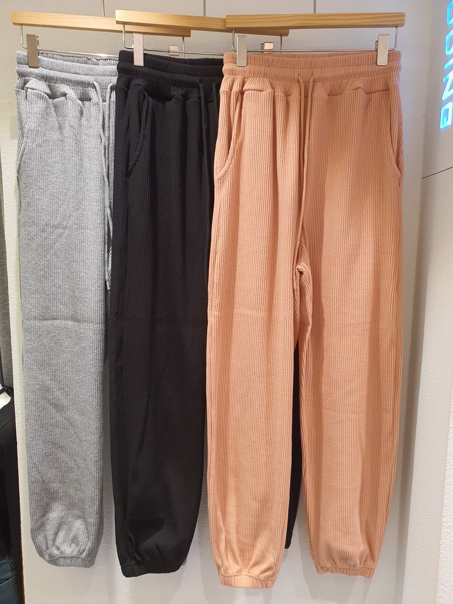 品名:골지조거팬츠 ◎※☞颜色:그레이, 블랙, 핑크 ◎※☞尺寸:FREE ◎※☞材质:纯棉 52%,聚酯 48% 翻译