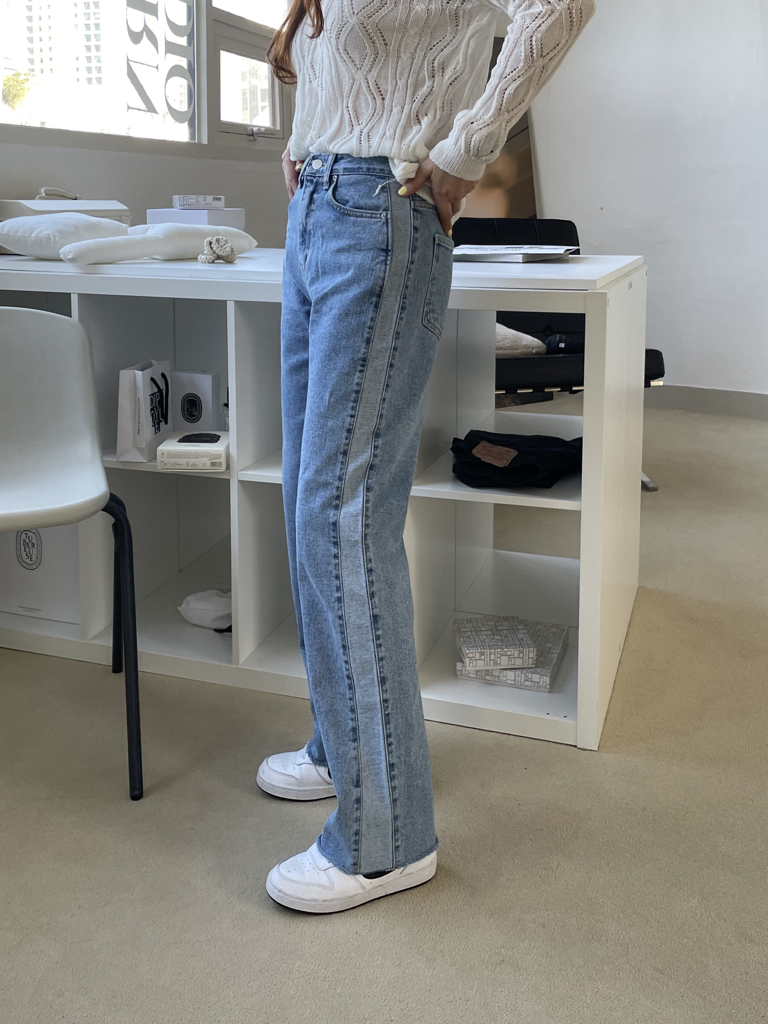 品名:368 봄신상 라인 배색 청바지 ◎※☞颜色:블랙, 청 ◎※☞尺寸:L, M, S ◎※☞材质:纯棉 100% 翻译