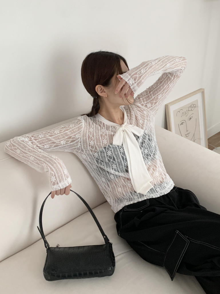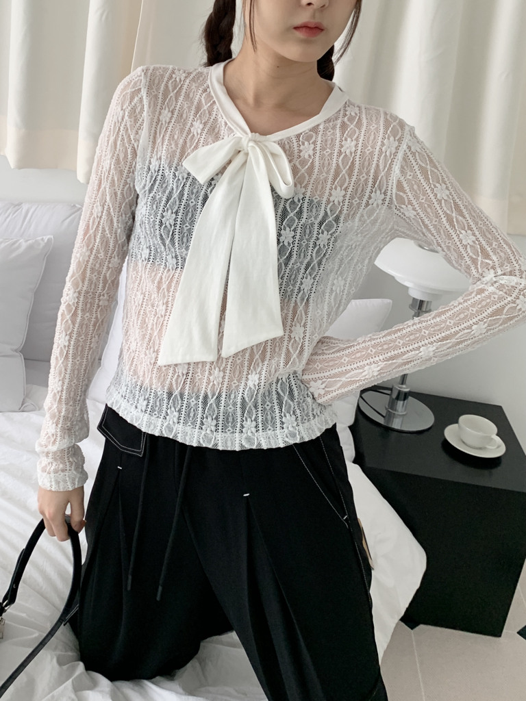 品名:맨하튼 타이 레이스 브라우스 리본 스판 좋음 탑 ◎※☞颜色:블랙, 아이 ◎※☞尺寸:FREE ◎※☞材质:尼龙 90%,聚氨酯 10% ◎※☞注意事项:只能干洗,只能手洗,不能手洗,机洗,不能使用漂白剂,不能烘干,不能熨烫,不能曲折