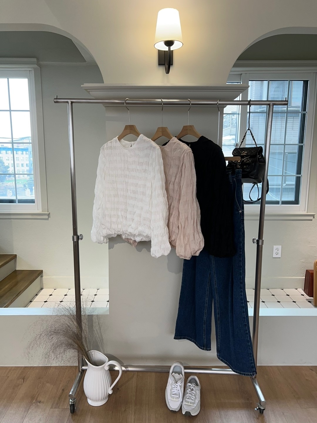 品名:아워블라우스 ◎※☞颜色:블랙, 아이보리, 핑크 ◎※☞尺寸:FREE ◎※☞材质:聚酯 100% 翻译