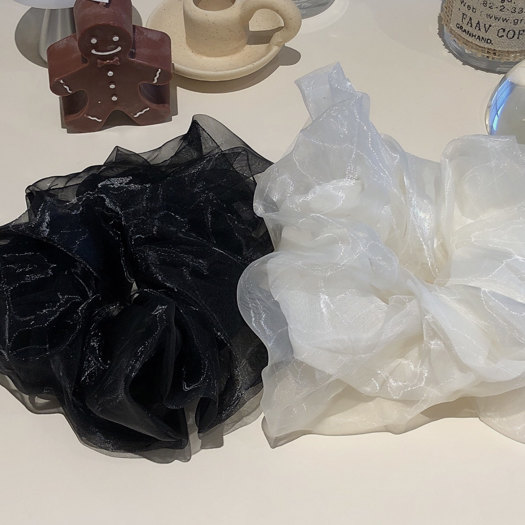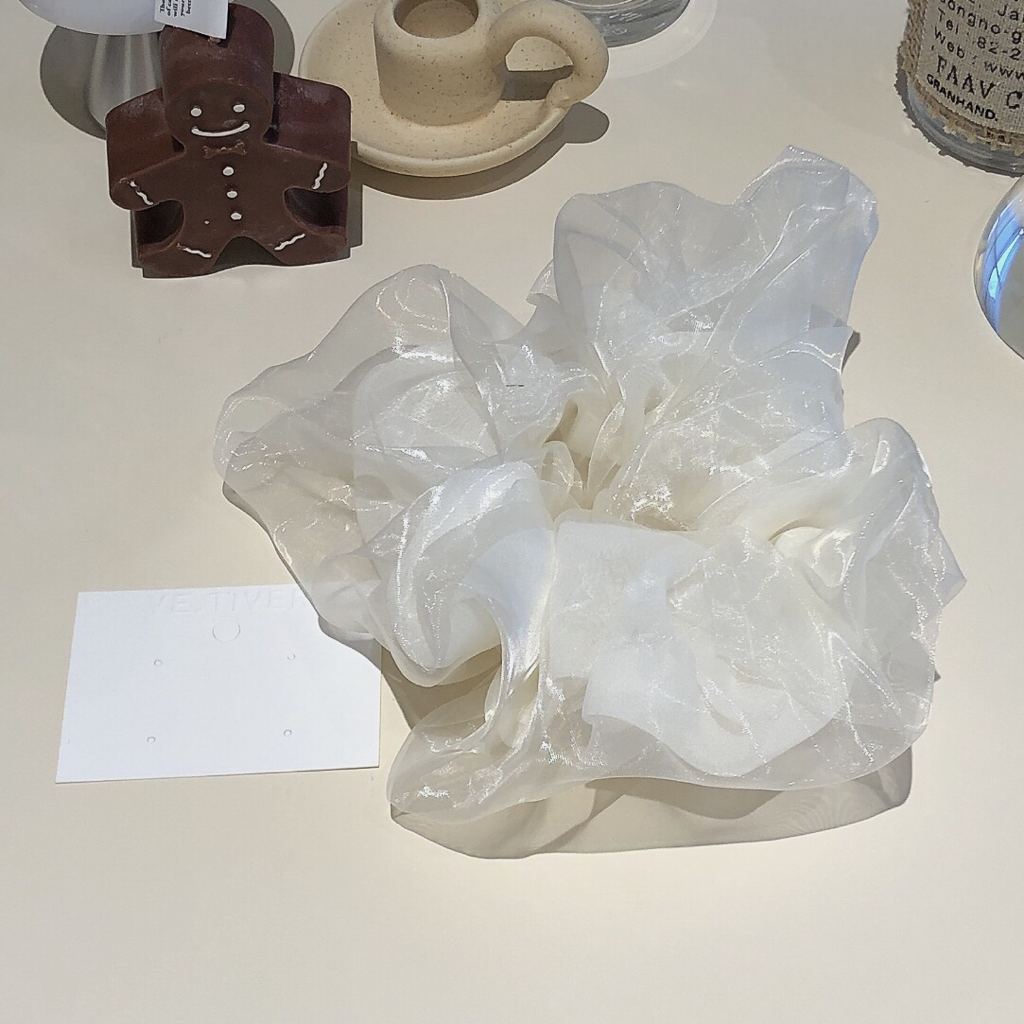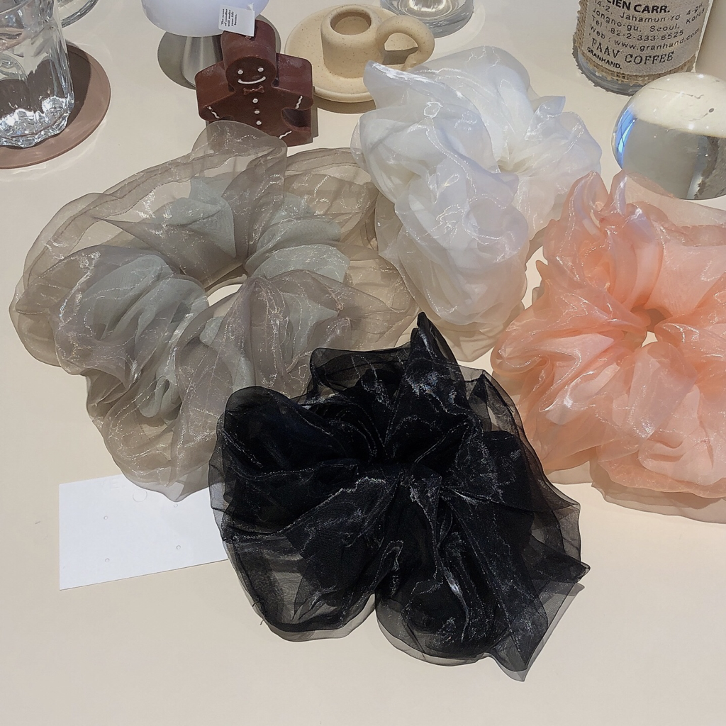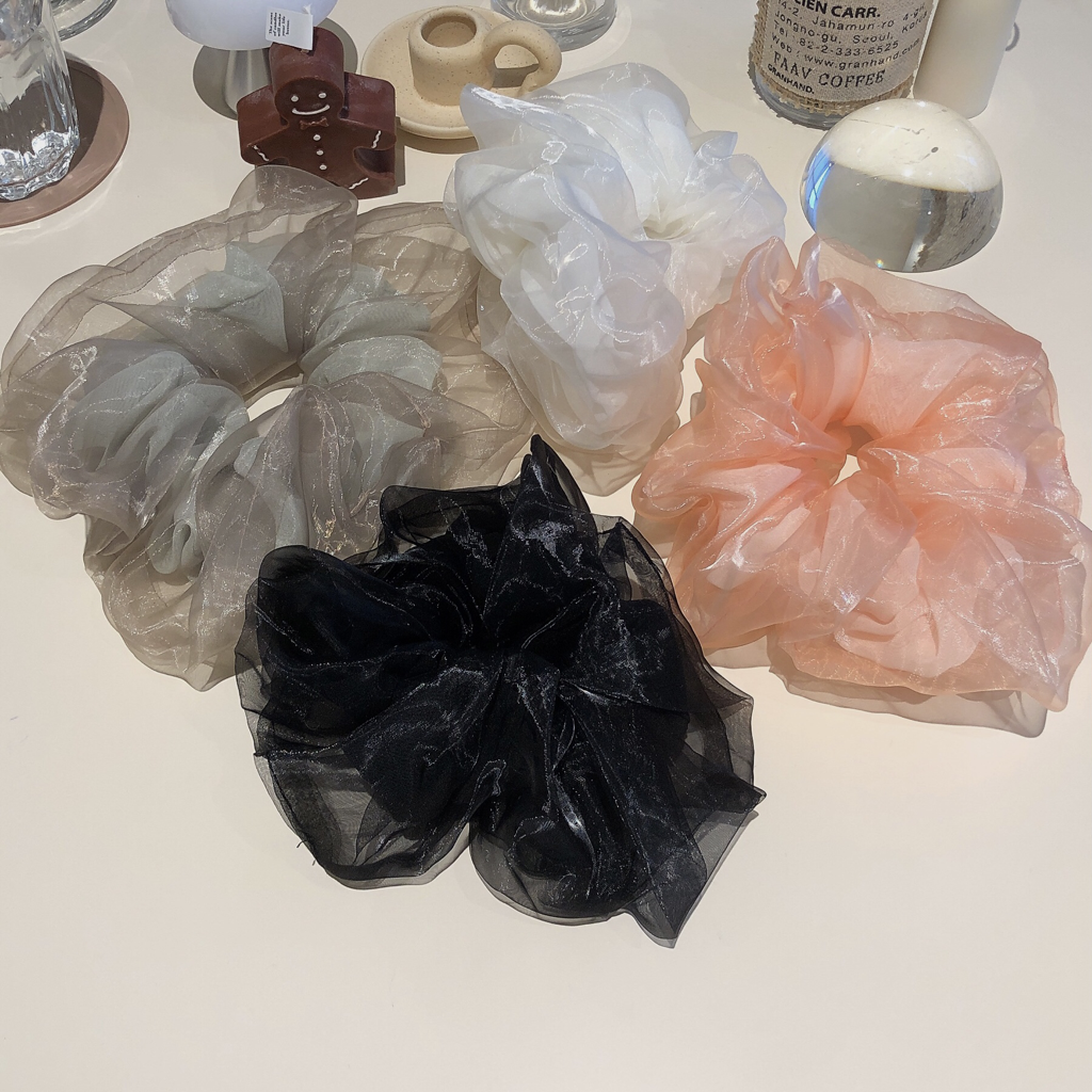 品名:HB1026(빅사이즈곱창 스크런치 펄 시스루 ◎※☞颜色:블루, 카키, 핑크, 화이트 ◎※☞尺寸:FREE ◎※☞材质:尼龙 100% 翻译