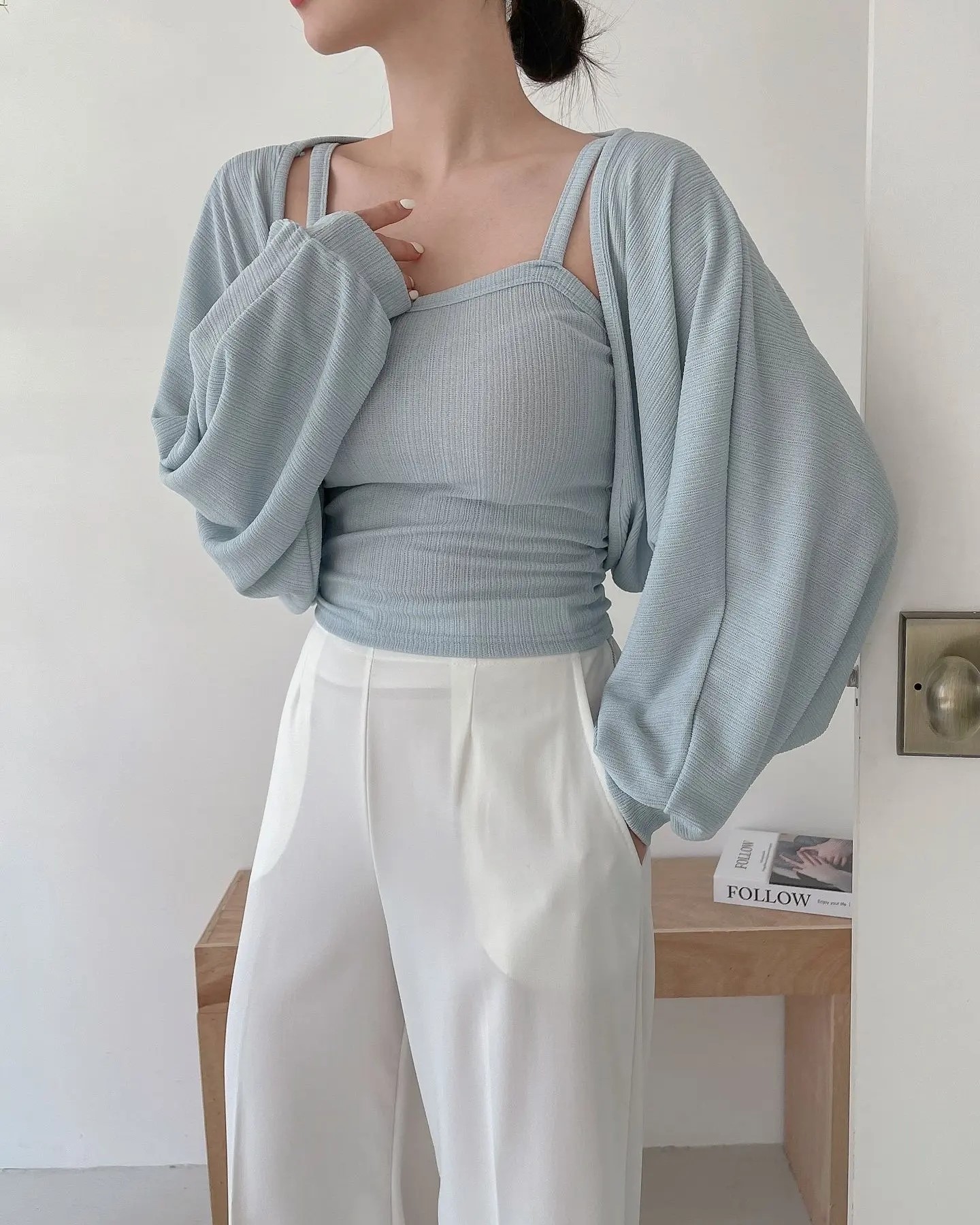 品名:티파니세트 ◎※☞颜色:노랑, 블랙, 소라, 아이보리 ◎※☞尺寸:FREE ◎※☞材质:스판 5%,聚酯 95% 翻译