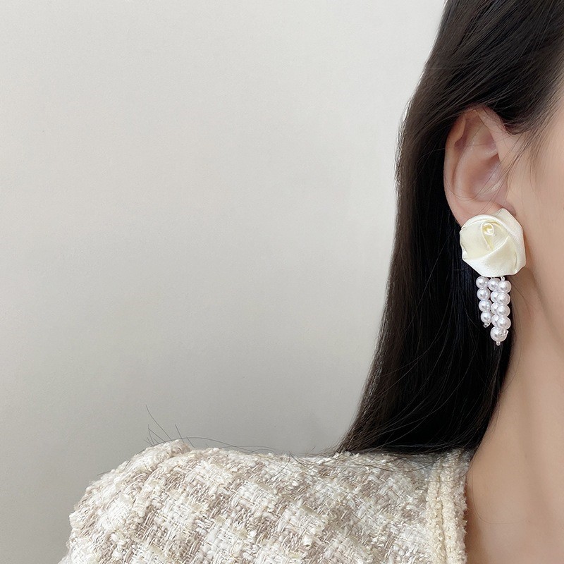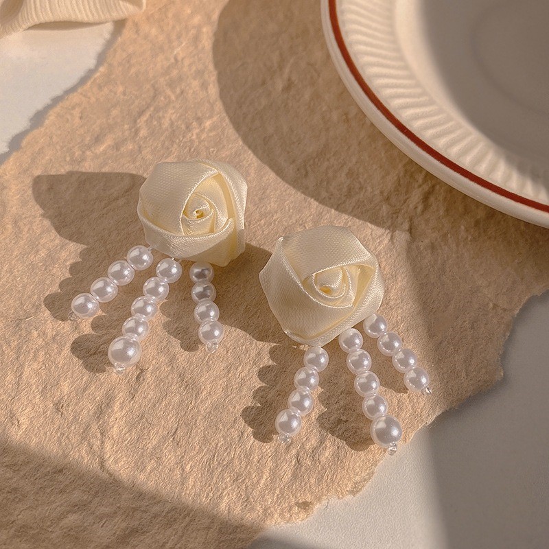 品名:E2375 장미리본귀걸이 ◎※☞颜色:화이트 ◎※☞尺寸:4.7CM×2.2CM ◎※☞材质:镀金 100% 翻译
