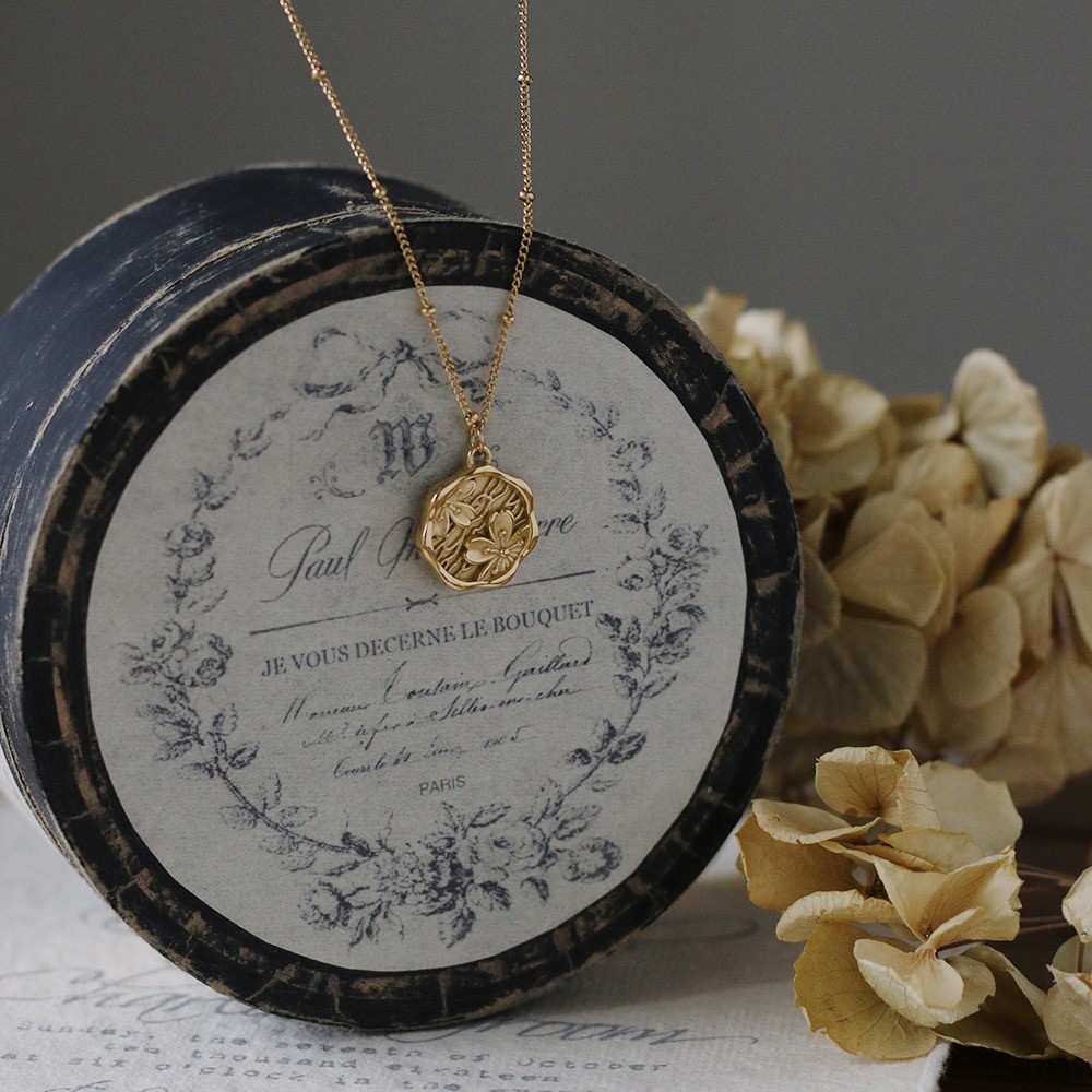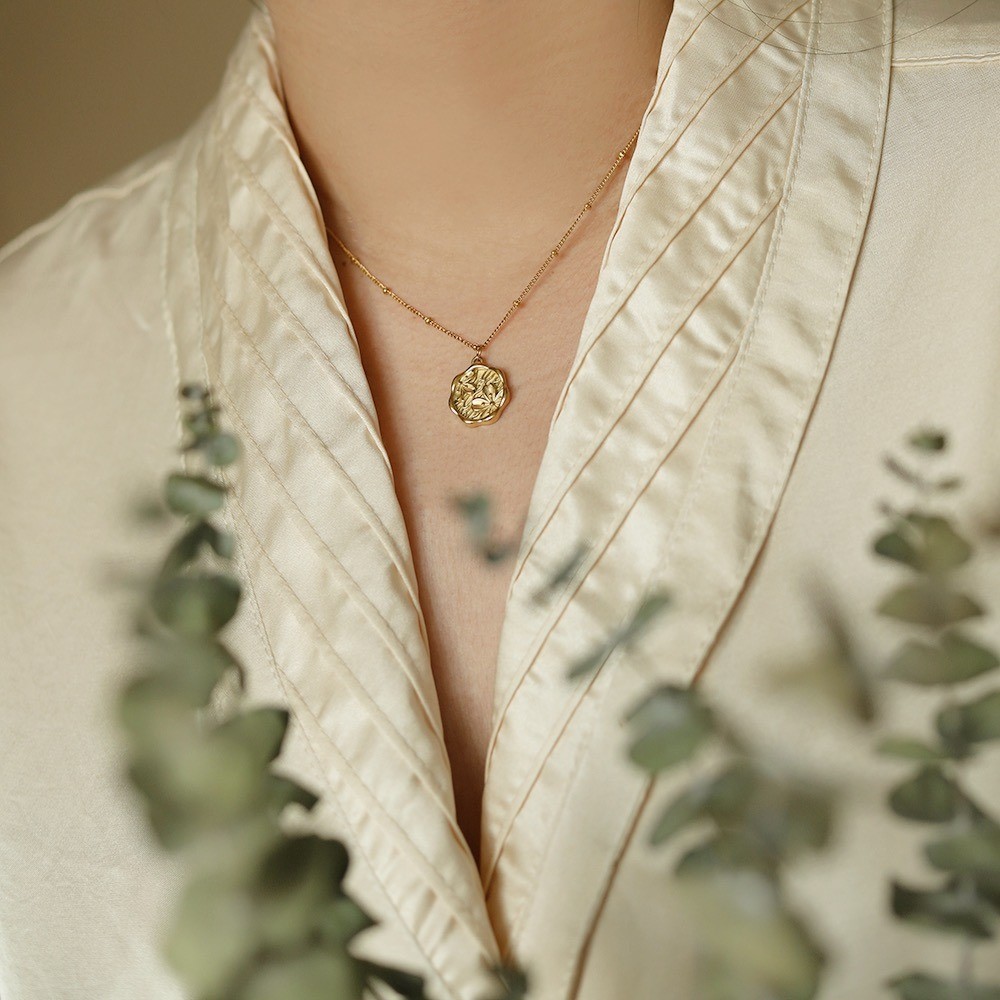 品名:TN192 티타늄플라워음각목걸이 ◎※☞颜色:골드 ◎※☞尺寸:펜던트 직경 1.6CM, 체인 길이 41+5CM ◎※☞材质:티타늄스틸 100% 翻译