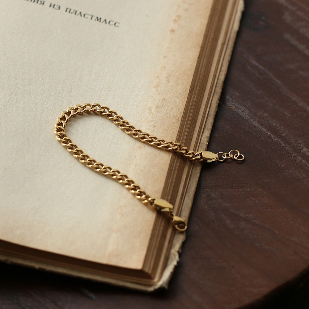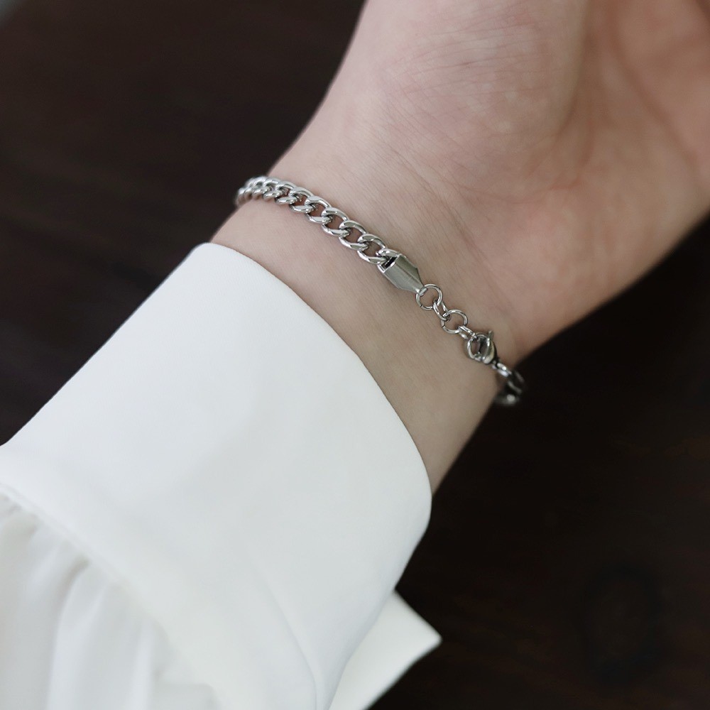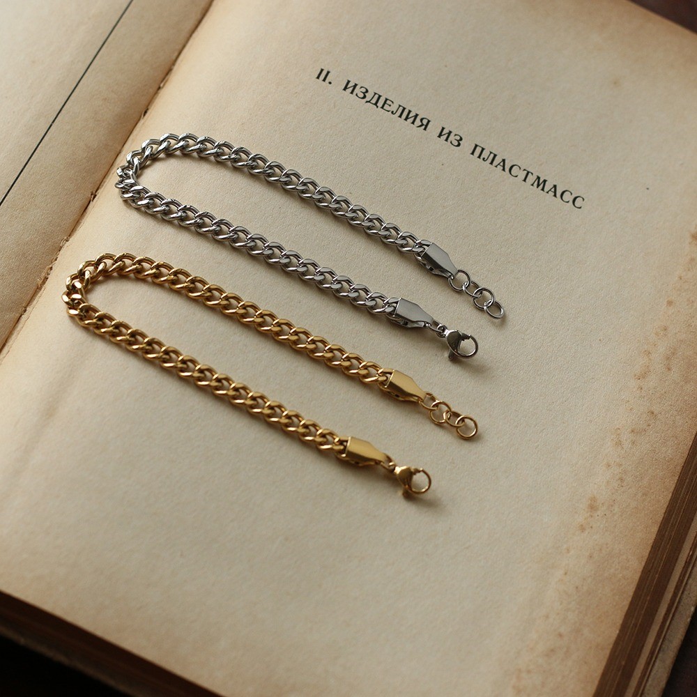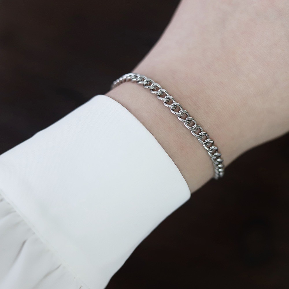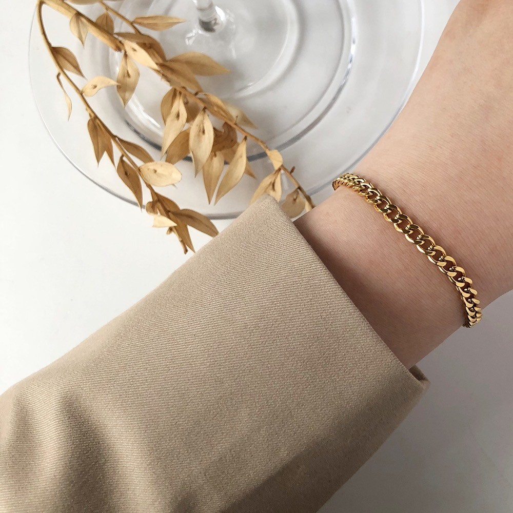 品名:TB032 티타늄체인팔찌 ◎※☞颜色:골드, 실버 ◎※☞尺寸:체인 폭 5MM, 체인 길이 17+1.5CM ◎※☞材质:티타늄 100% 翻译