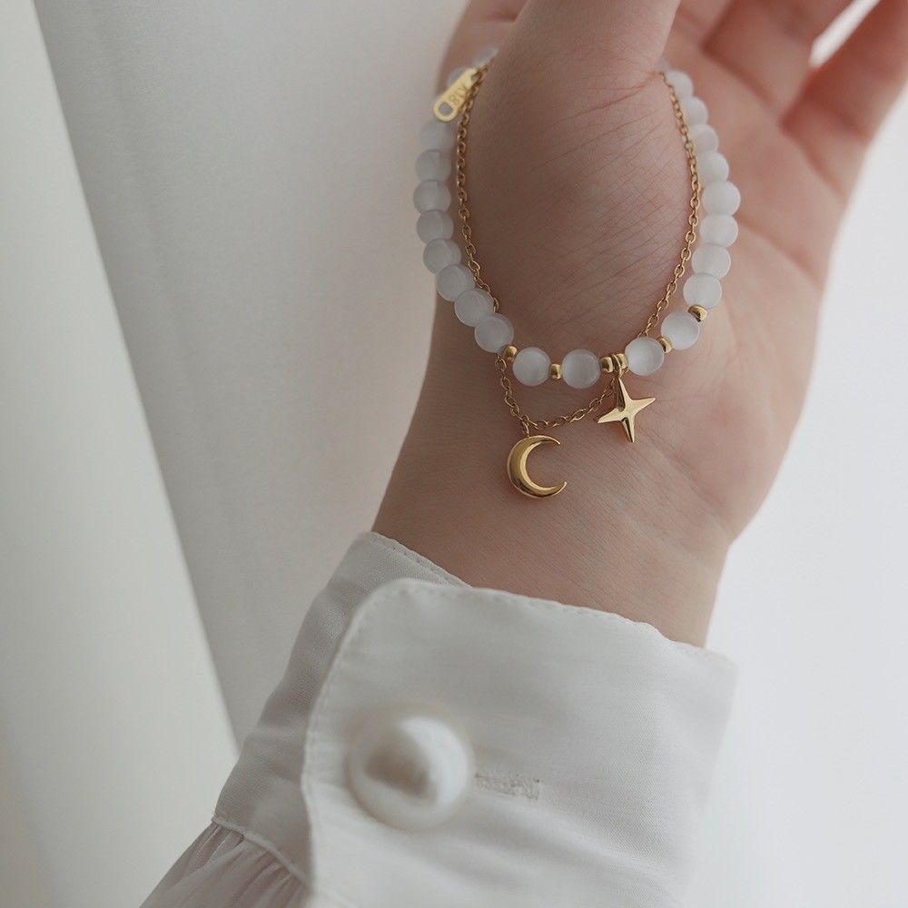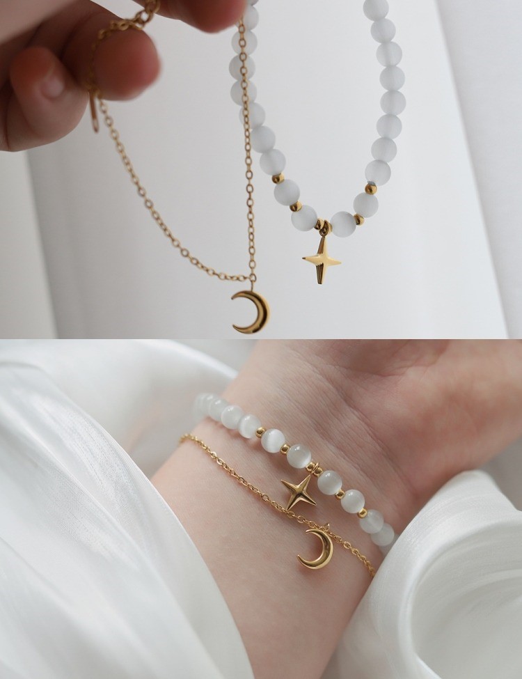 品名:TB031 티타늄유리알팔지(두개세트) ◎※☞颜色:골드 ◎※☞尺寸:체인 길이 16+5CM ◎※☞材质:티타늄스틸 100%,화이트 유리비즈 100% 翻译