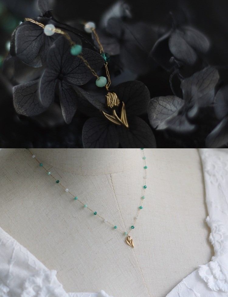 品名:TN189 티타늄그린튤립목걸이 ◎※☞颜色:골드 ◎※☞尺寸:튤립 1.2X0.6MM, 체인 길이 41+6 CM ◎※☞材质:티타늄스틸 100% 翻译