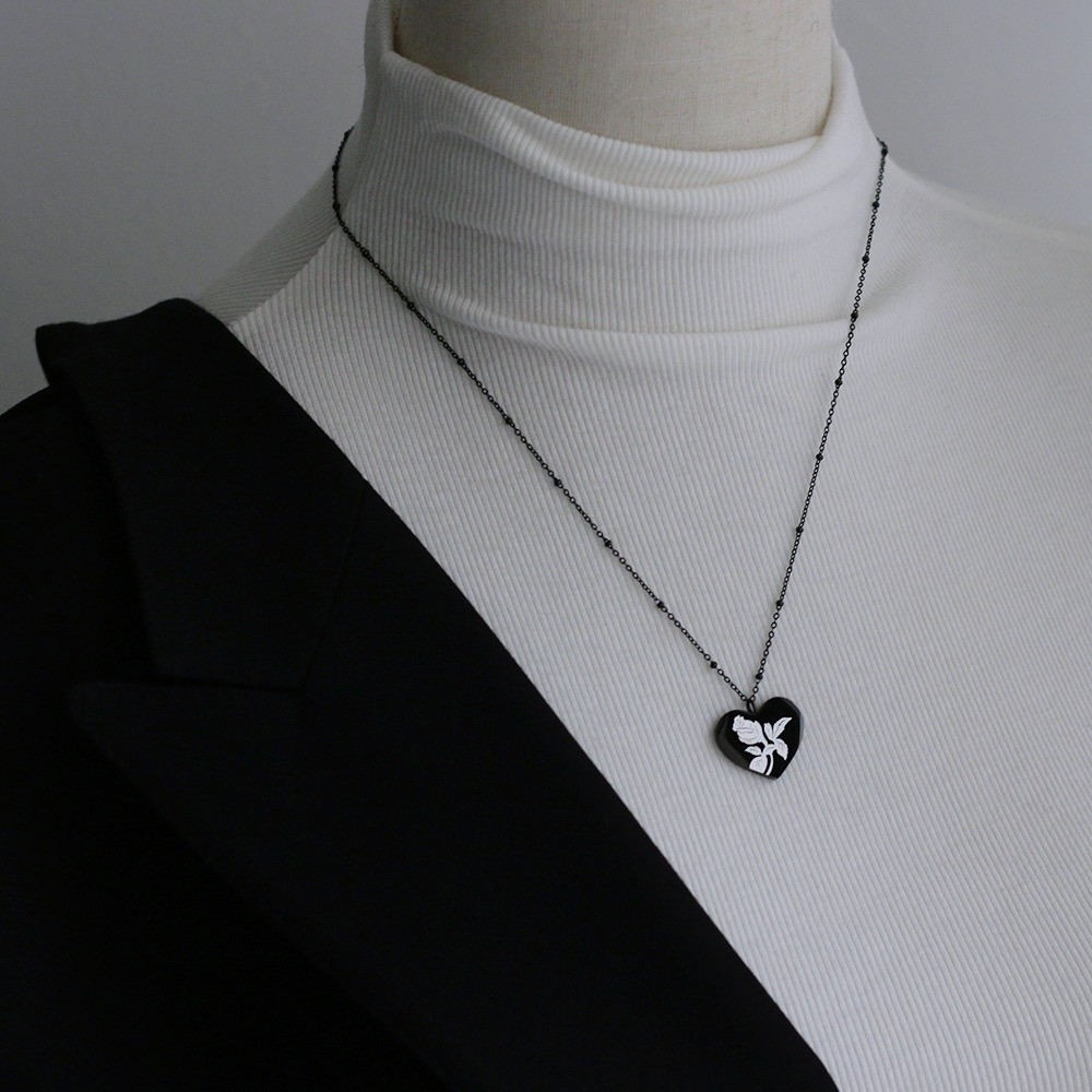 品名:TN184 티타늄하트블랙로즈목걸이 ◎※☞颜色:블랙(베이킹페인트) ◎※☞尺寸:펜던트 2X1.7CM,체인 길이 46+5 CM ◎※☞材质:티타늄스틸 100% 翻译