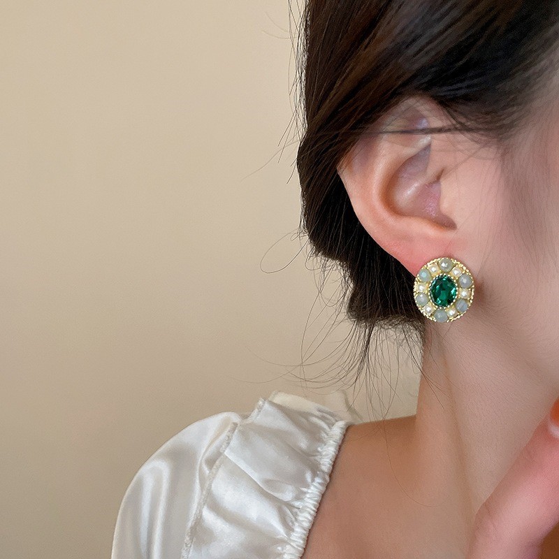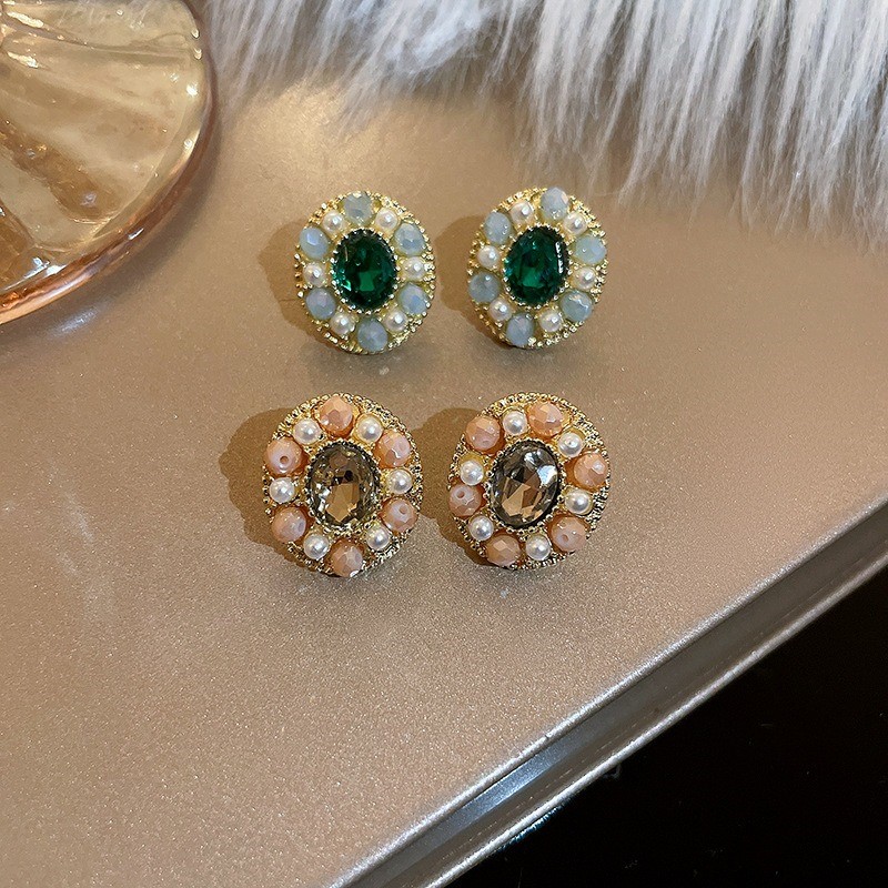 品名:E2360 타원형귀걸이 ◎※☞颜色:그린, 핑크 ◎※☞尺寸:F ◎※☞材质:镀金 100% 翻译