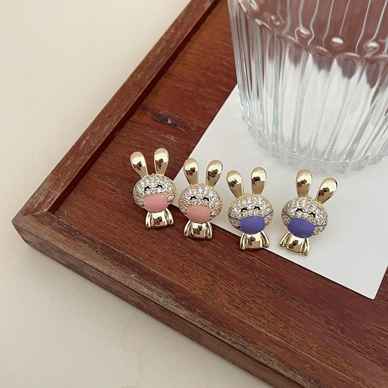 品名:E2325 마스크쓴토끼귀걸이 ◎※☞颜色:퍼플, 핑크 ◎※☞尺寸:F ◎※☞材质:镀金 100% 翻译