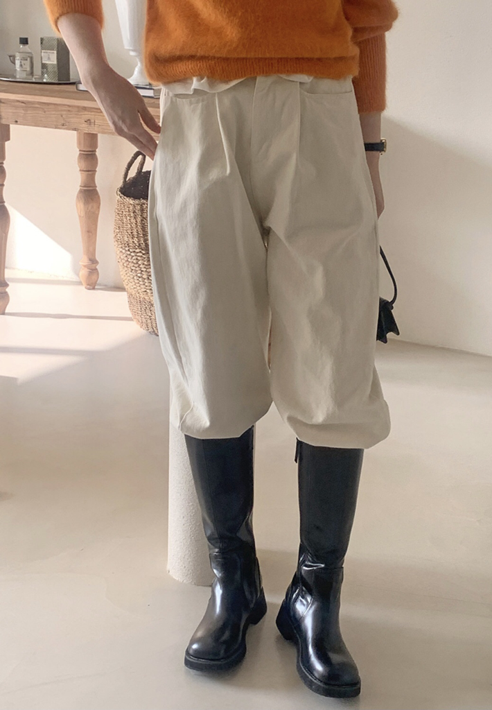品名:모모 핀턱 반밴딩 PT ◎※☞颜色:네이비, 베이지, 아이보리, 차콜 ◎※☞尺寸:FREE ◎※☞材质:纯棉 100% 翻译