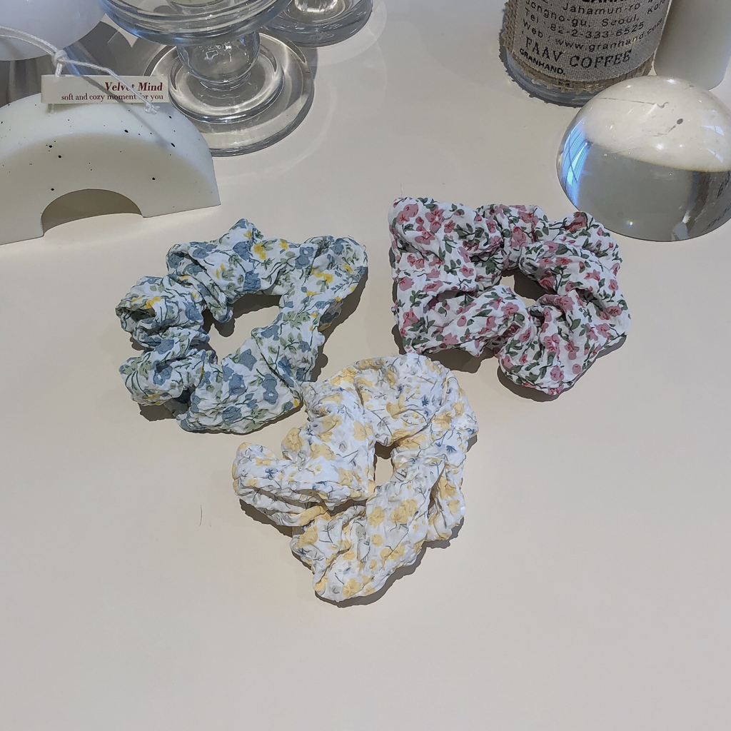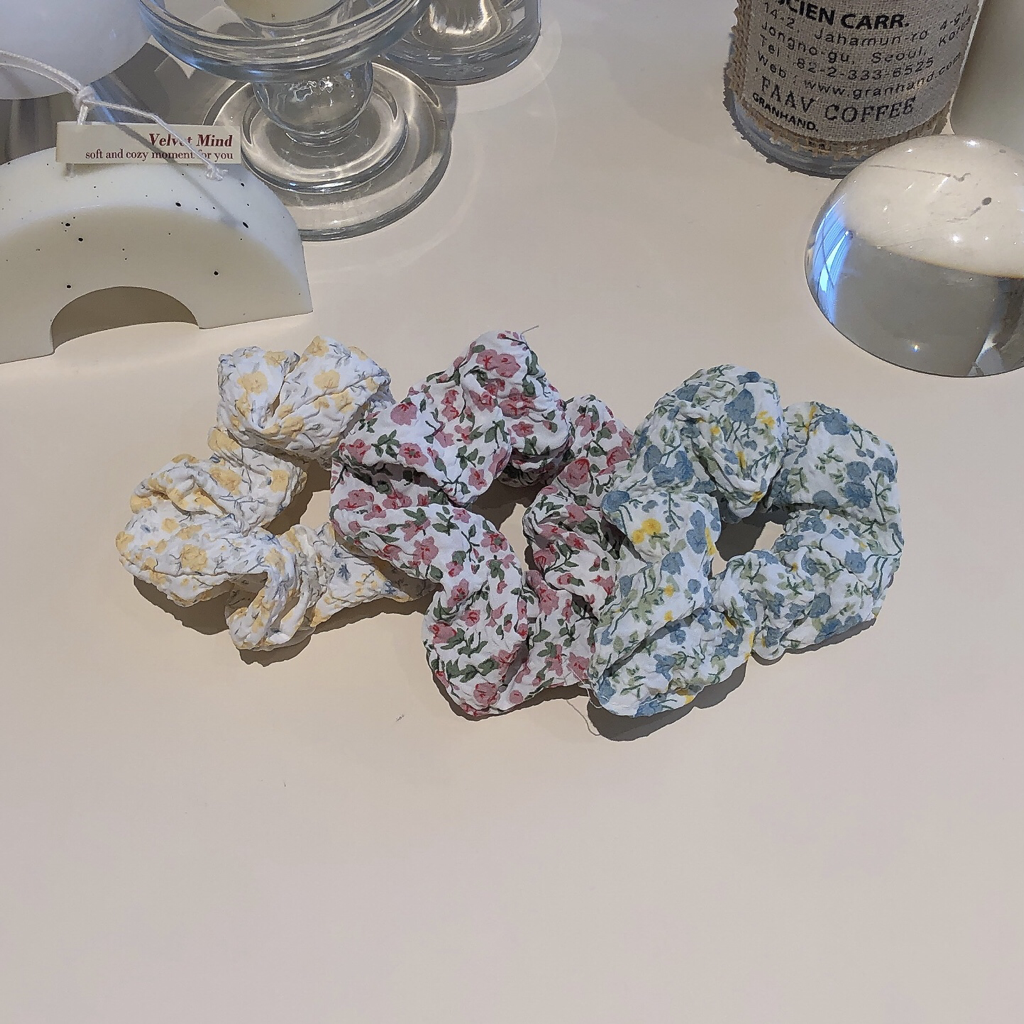 品名:HB1020(플라워곱창 플라워스크런치 꽃 미니곱창 헤어악세사리) ◎※☞颜色:블루, 옐로우, 핑크 ◎※☞尺寸:FREE ◎※☞材质:纯棉 100% 翻译