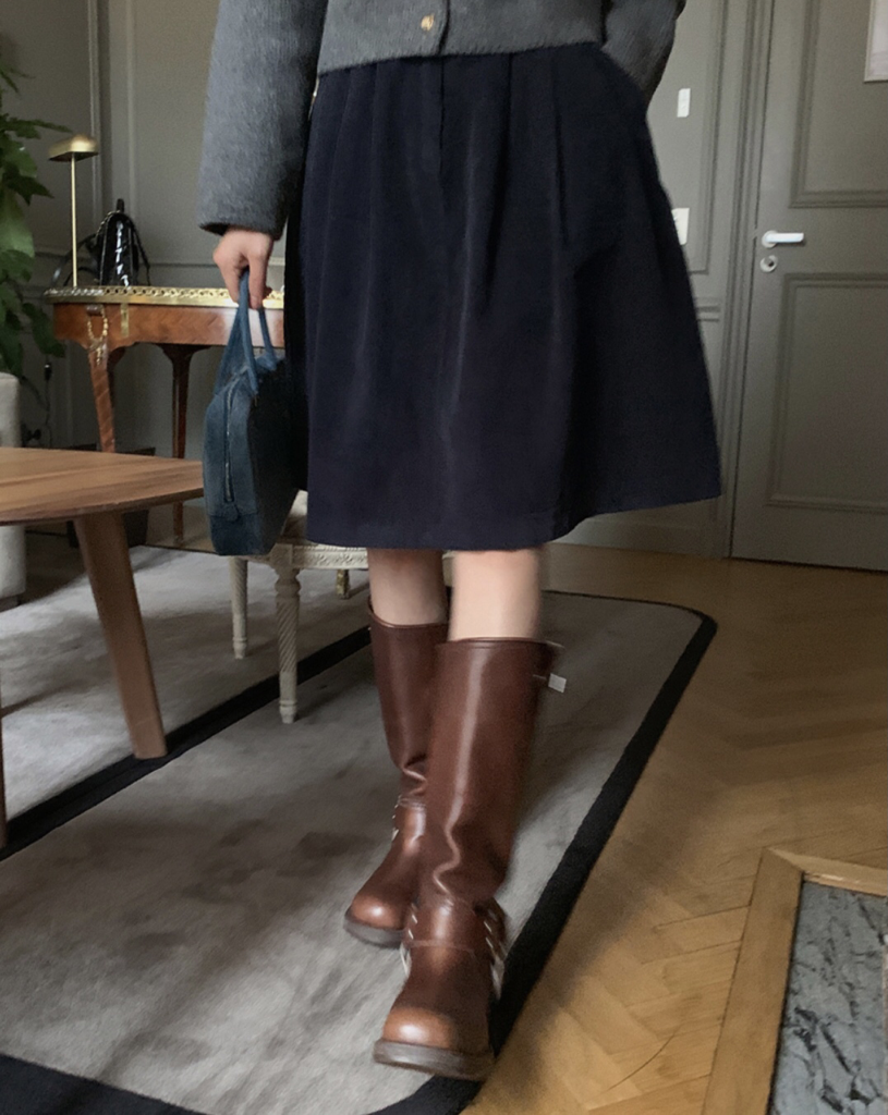 品名:코코 코듀로이 미디 SK ◎※☞颜色:네이비, 아이보리, 카키 ◎※☞尺寸:FREE ◎※☞材质:纯棉 100% 翻译
