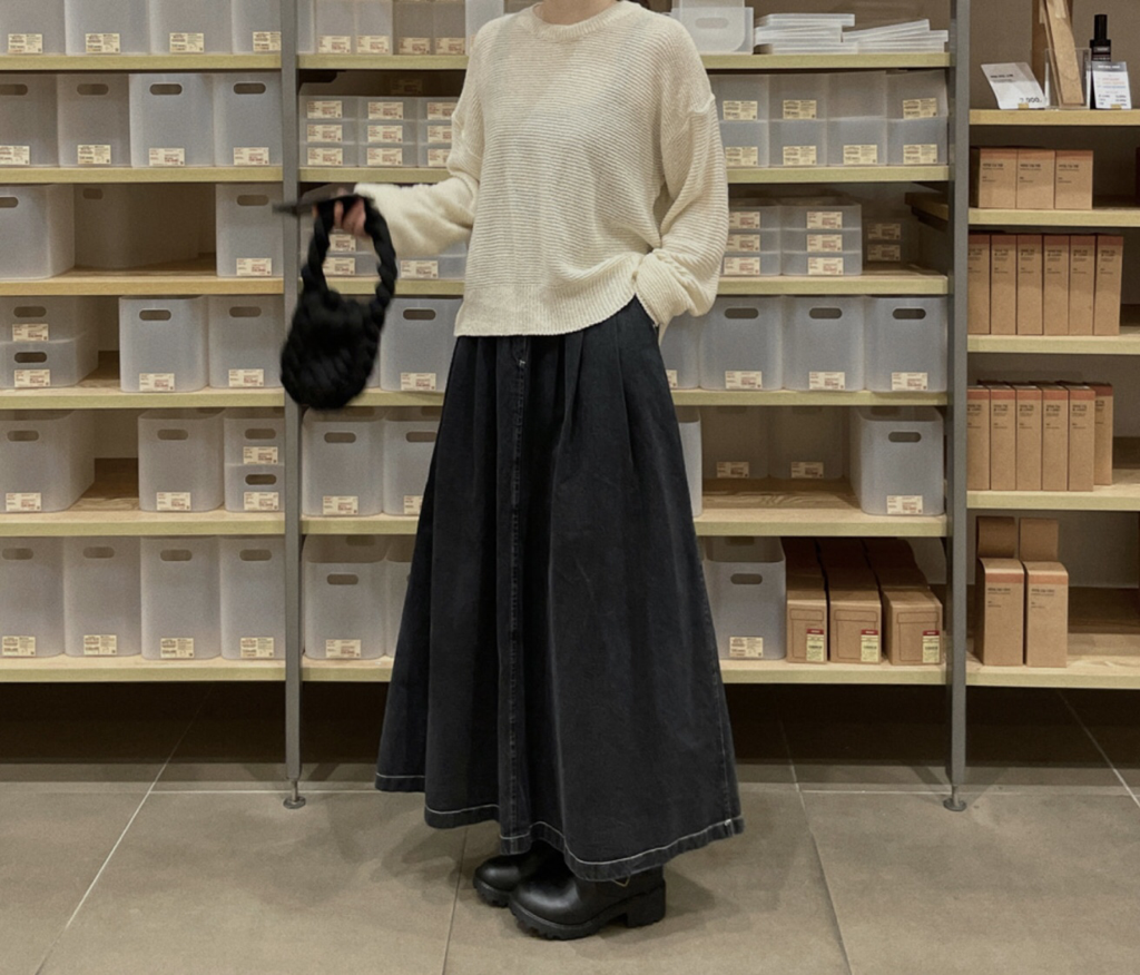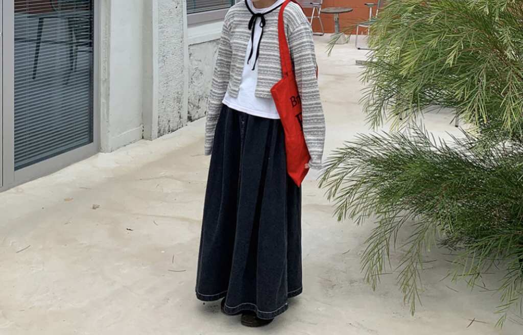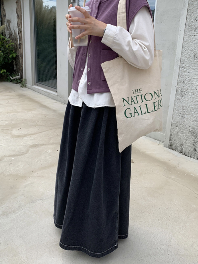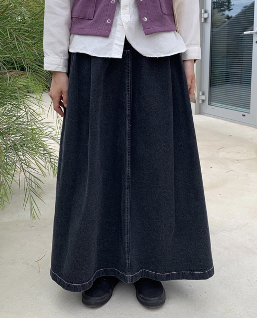 品名:时尚街头宽松A字褶皱牛仔长裙 ◎※☞颜色:흑청 ◎※☞尺寸:FREE ◎※☞材质:纯棉 100% 翻译