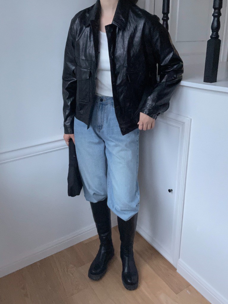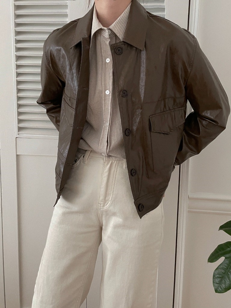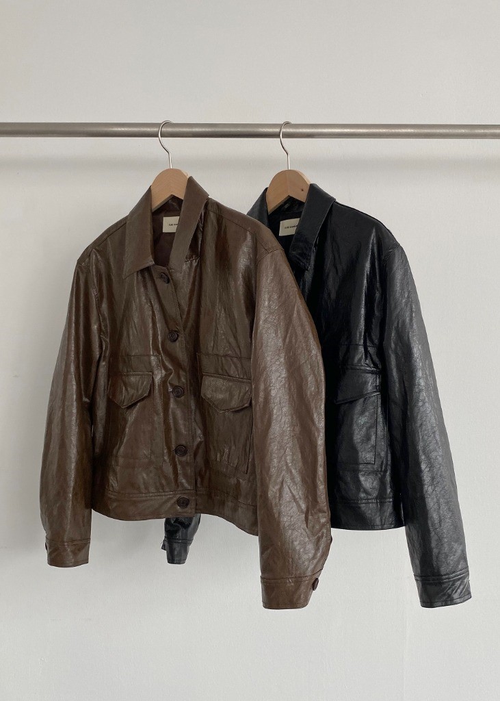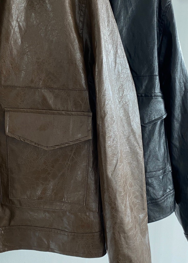 品名:레더포켓자켓 ◎※☞颜色:검정, 브라운 ◎※☞尺寸:FREE ◎※☞材质:聚氨酯 65%,人造纤维 32%,尼龙 3% 翻译