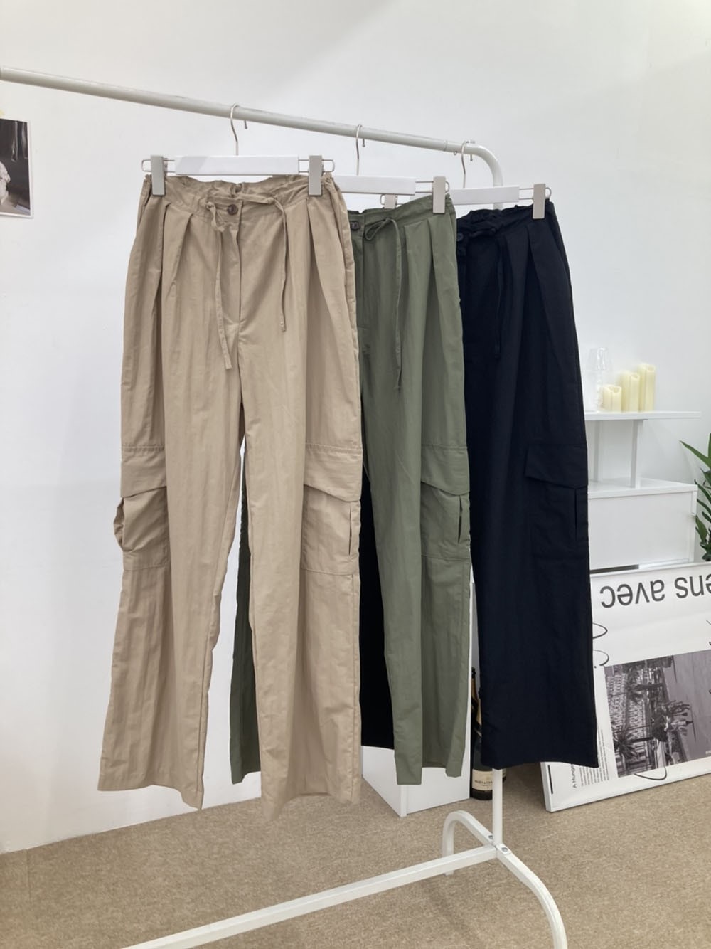 品名:스트링건빵팬츠 ◎※☞颜色:베이지, 블랙, 카키 ◎※☞尺寸:FREE ◎※☞材质:尼龙 100% 翻译