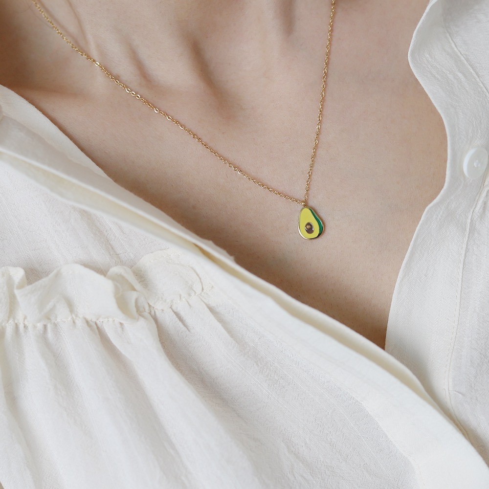 品名:TN203 티타늄아보카도목걸이 ◎※☞颜色:골드 ◎※☞尺寸:펜던트: 0.9X1.2 CM,체인 길이 41+6 CM ◎※☞材质:钢 100%,钛 100% 翻译